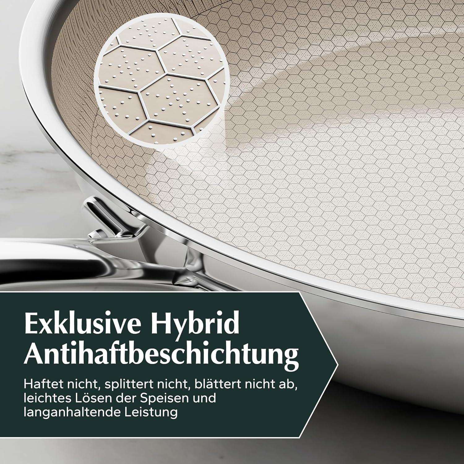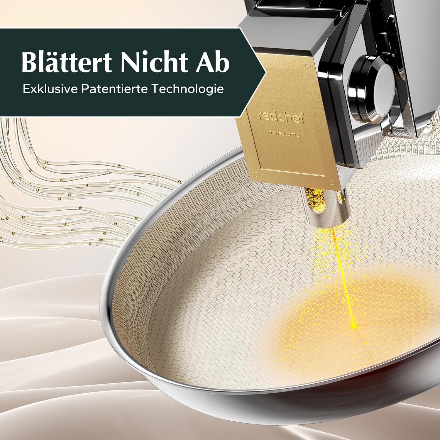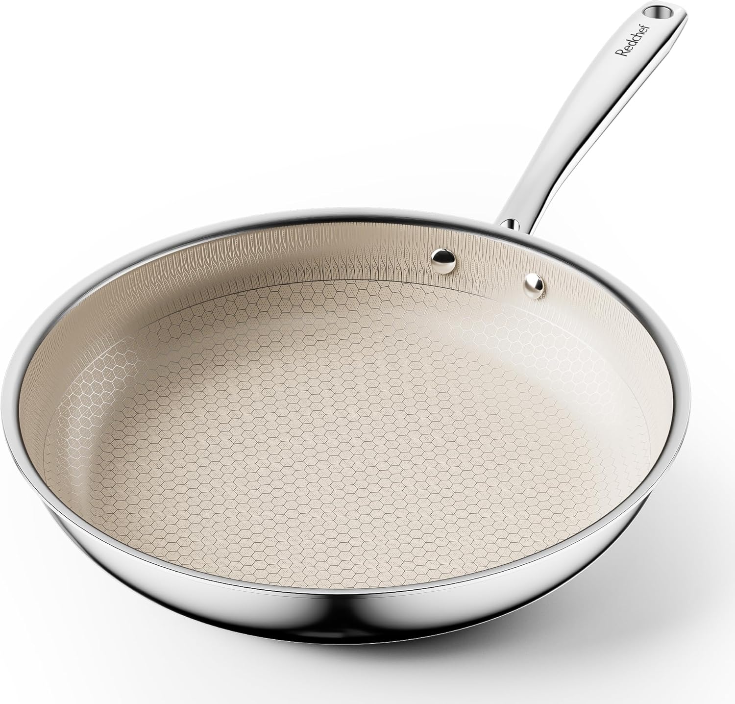 Redchef 28 cm Wabenstruktur Bratpfanne Hybrid Tri-Ply Edelstahlpfanne, PTFE Frei PFAS Frei PFOA Frei mit Smarter Hitzeverteilung Universalpfannen für alle Herdarten Spülmaschinenfest Backofenfest | قیمت یورویی 49.99€