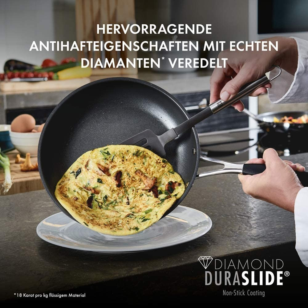 ماهیتابه لبه بلند zwilling سری Poletto با قطر 24 سانت، انتخابی حرفهای برای سرخ کردن، تفت دادن و پخت غذاهای متنوع با طراحی مقاوم و بادوام.