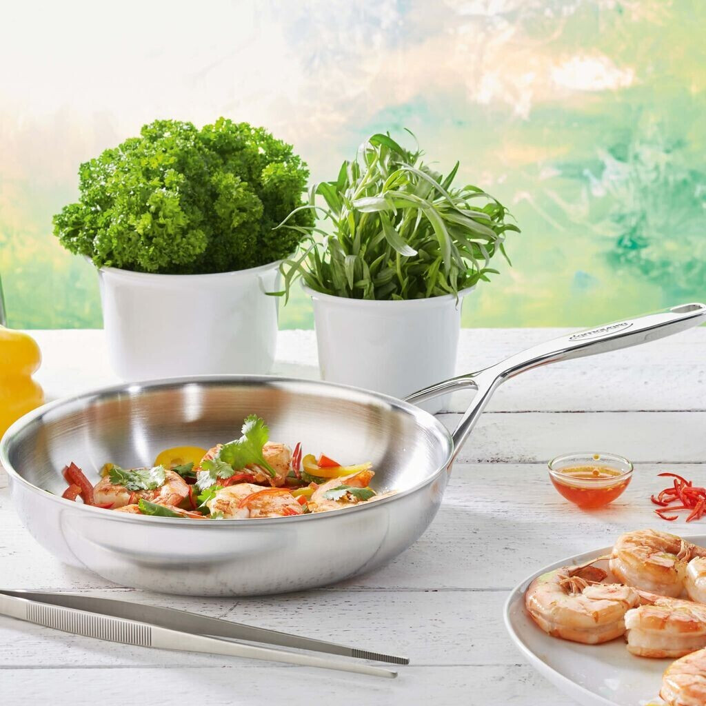 ماهیتابه حرفهای zwilling سری Demeyere Multiline با طراحی خاص و تکنولوژی پیشرفته، یکی از بهترین انتخابها برای آشپزهای حرفهای و خانوادههایی است که به کیفیت اهمیت میدهند. این ماهیتابه با ساختار چندلایه (Multiline) و استفاده از استیل ضد زنگ با بالاترین کیفیت، توزیع یکنواخت حرارت را فراهم کرده و به شما امکان میدهد غذاهای خود را بهصورت حرفهای بپزید.