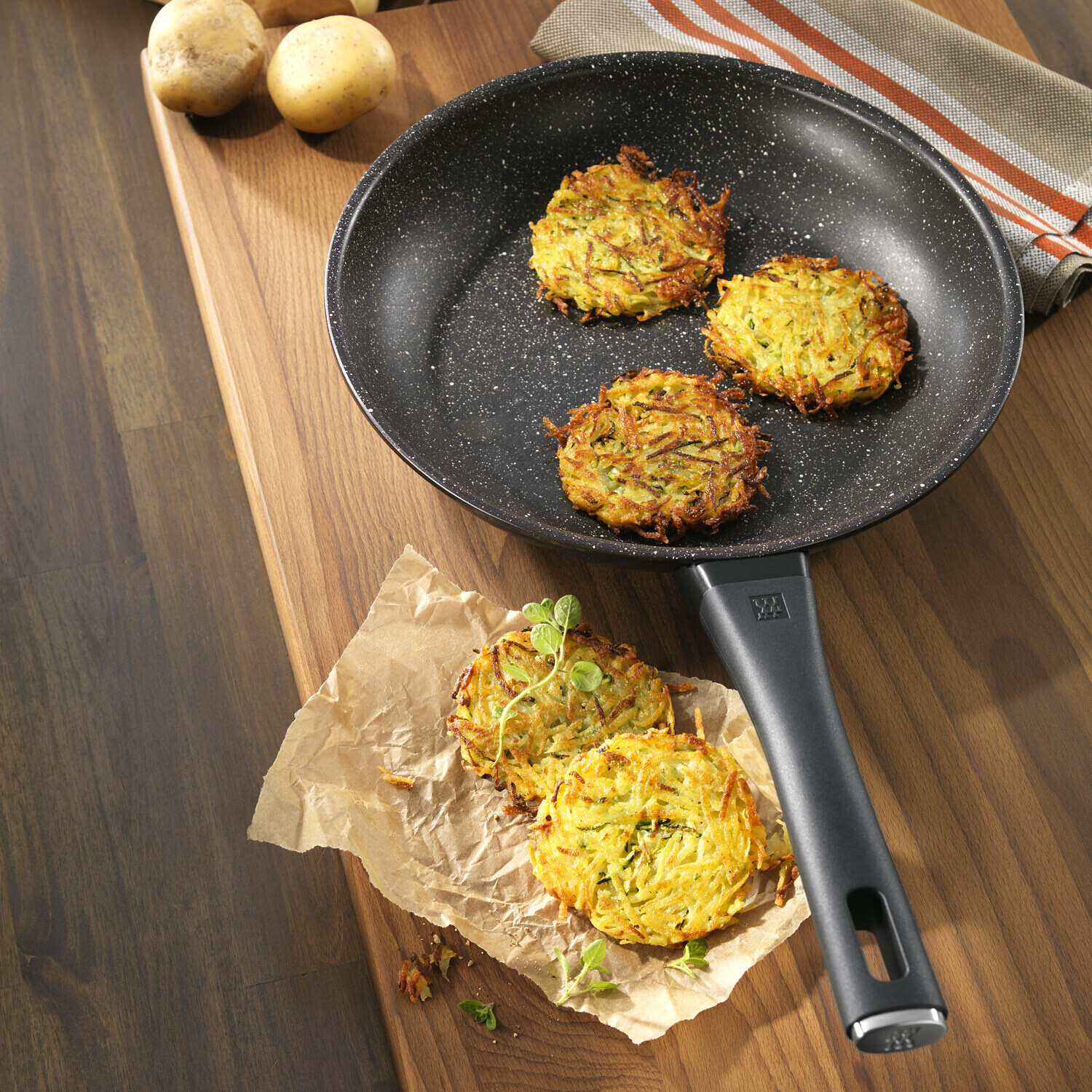 ماهیتابه لبه بلند zwilling سری Marquina Plus با قطر 20 سانت، ساختهشده از آلومینیوم فشرده با روکش نچسب مقاوم، مناسب برای سرخ کردن و پخت سالم غذا با توزیع یکنواخت حرارت.