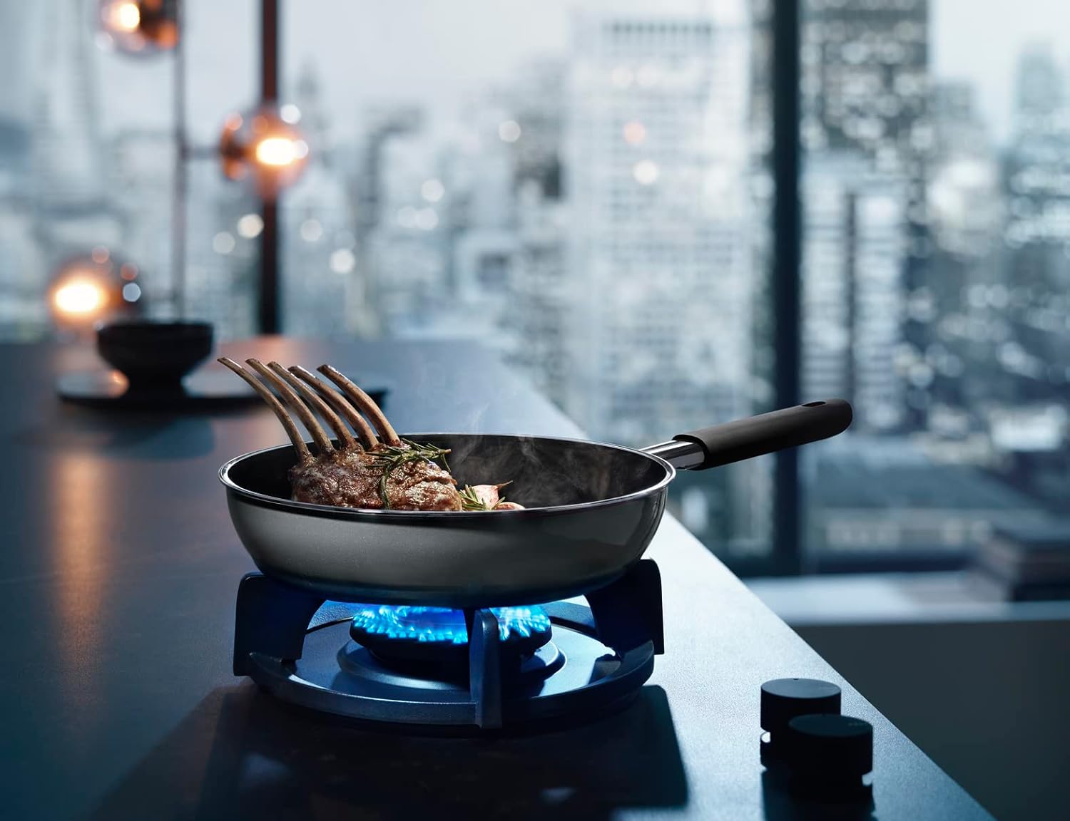ماهیتابه معدنی WMF Fusiontec، سازگار با القایی، 24 سانتیمتر، سرامیک پیشرفته، روکش سیلیکونی محافظ حرارت قابل جدا شدن، مقاوم در برابر خش، خاکستری