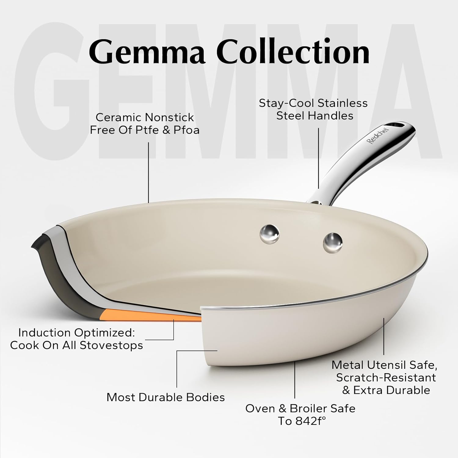 ماهیتابه نچسب Redchef، سرامیک، ماهیتابه نچسب، 24.1 سانتی متر، تابه با دسته خنک، انواع اجاق گاز (گاز، برقی و القایی)، قابل شستشو در ماشین ظرفشویی/فر، بدون PFAS