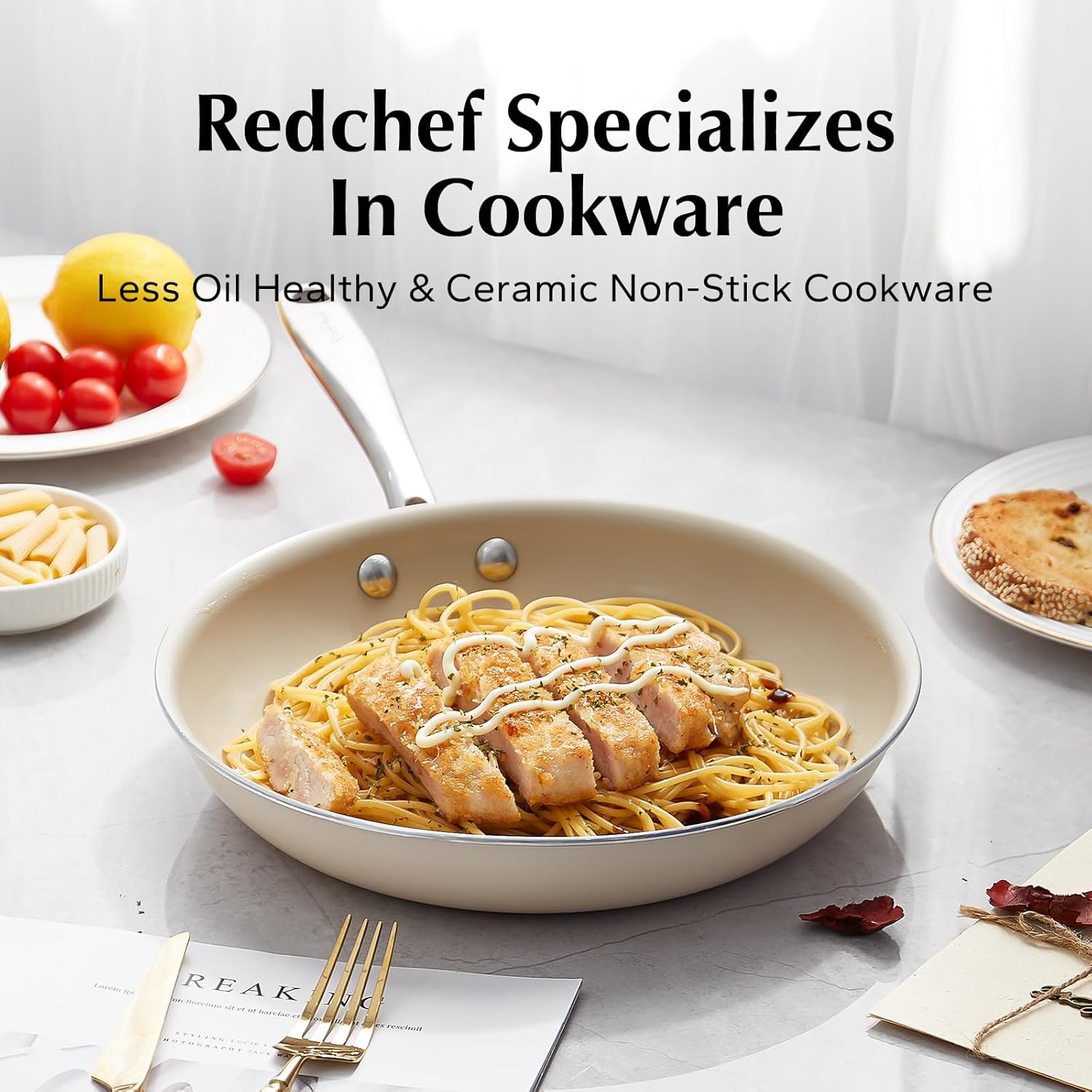 Redchef Antihaftbeschichtete Bratpfanne, Keramik, Antihaft-Sauté-Pfannen, 24,1 cm, Kochpfanne mit kühlbleibendem Griff, alle Herdarten (Gas, Elektro und Induktion), spülmaschinen-/ofenfest, PFAS-frei | قیمت یورویی 67.13€