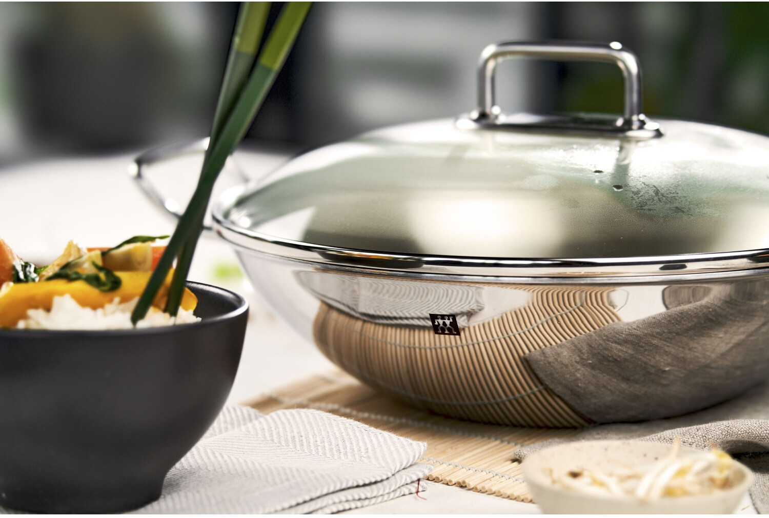 ووک استیل زولینگ آلمان مدل ZWILLING Plus Pro با طراحی حرفهای و ساختار چندلایه، انتخابی ایدهآل برای پختوپز انواع غذاهای آسیایی و بینالمللی است. این ووک با قطر 32 سانت، درب شیشهای و توری بخارپز، امکانات متنوعی را برای آشپزی فراهم میکند.