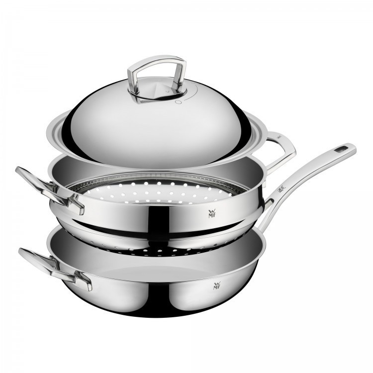 ماهیتابه ووک 32 سانتی متر وی ام اف آلمان - مدل WMF Multiply Wok mit Metalldeckel und Dämpfereinsatz با درب فلزی و سبد بخارپز