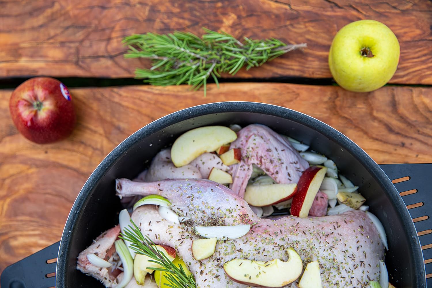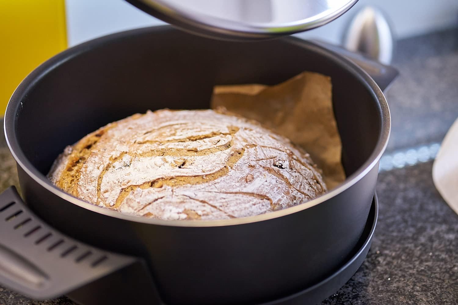 Tragbare elektrische Backform. Ein kleiner Helfer, der einen großen Elektrobackofen ersetzt, besser backt, Geld spart und tragbar ist. Bestehend aus einem 580-W-Elektrobackdeckel mit Sichtfenster zur ständigen Überwachung des Backvorgangs, beschichtet mit zwei Schichten schwarzem Teflon Classic Anti-Seize-Material, einer Aluminiumschüssel für hervorragende Wärmeleitung und einem Ständer zum Servieren der fertigen Speisen direkt auf dem Tisch. Die Aluminiumschüssel mit einem Fassungsvermögen von 4 l / 6 Portionen verteilt die Wärme gut und schafft besondere Garbedingungen. Ihre Speisen bleiben saftig und feucht und trocknen nicht durch lange Backzeiten aus wie in einem herkömmlichen Backofen. Die Backform selbst hält eine Temperatur von 160 bis 180 °C, optimal für gleichmäßiges Backen ohne komplizierte Temperatur- und Programmeinstellungen wie bei einem herkömmlichen Backofen. Im Gegensatz zu einem Küchenofen benötigen Sie nur 580 W Leistung und sparen so beim Backen Geld. Eine legendäre Marke auf dem tschechischen Markt, die in der Tschechischen Republik gegründet wurde und dort seit 1957 Backschüsseln herstellt. | قیمت یورویی : 99.9€