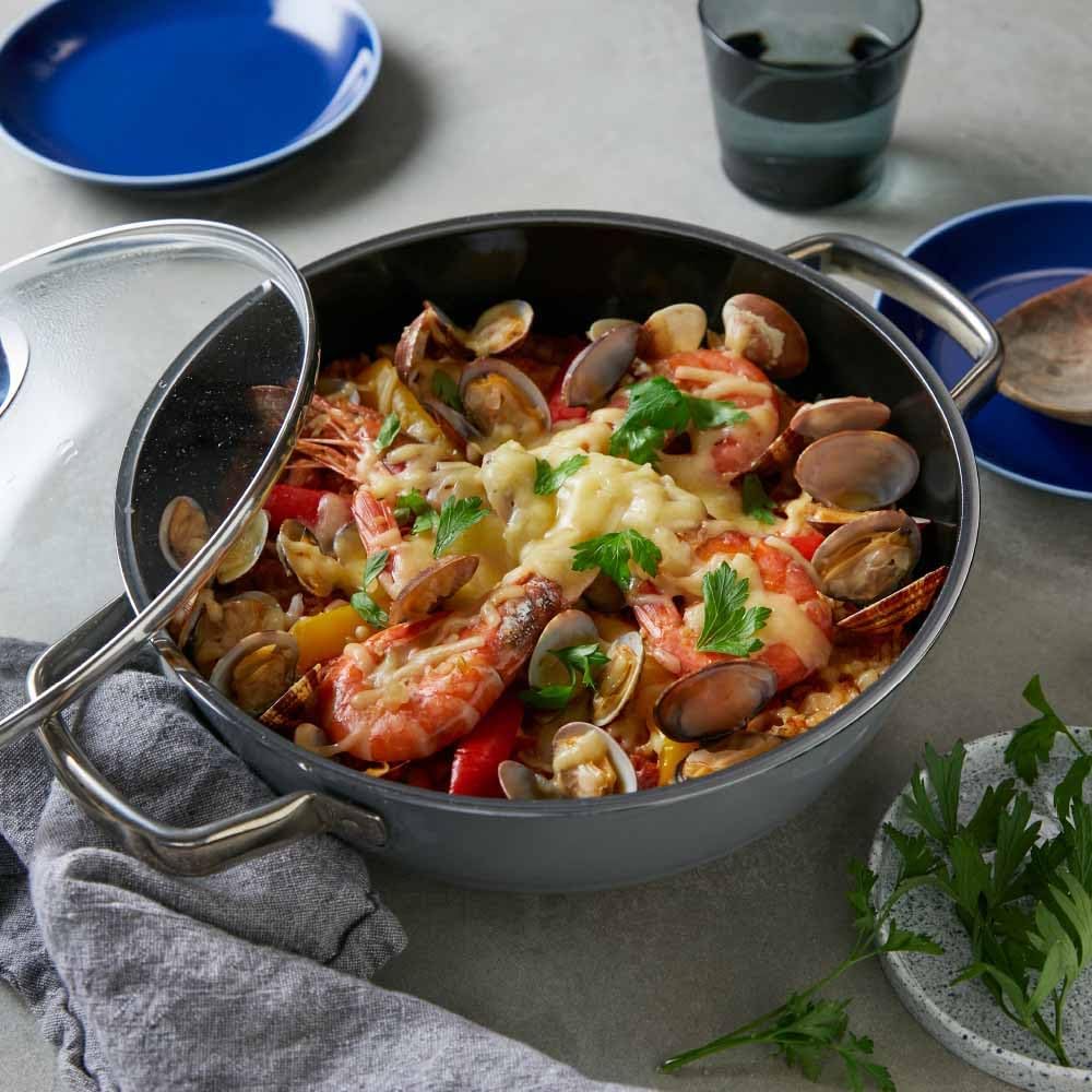 محتویات: ۱ عدد ماهیتابه/سرو با درب ۲۸ سانتیمتر (حجم ۴.۱ لیتر، ارتفاع با درب ۲۲ سانتیمتر) - ایدهآل برای اجاق گازهای با قطر ۲۲ سانتیمتر - شماره کالا: ۰۵۱۵۸۲۵۲۹۰ جنس: FUSIONTEC، یک سوپرآلیاژ ساخته شده از مواد بادوام و ضد خوردگی (معدنی طبیعی). فولاد ضد زنگ. قابل شستشو در ماشین ظرفشویی. قابل استفاده در فر، مقاوم در برابر حرارت تا ۲۵۰ درجه سانتیگراد. ساخت آلمان این تابه عمیق برای انواع اجاق گاز، از جمله اجاقهای القایی، مناسب است. پایه با هسته آهن-فولاد خود به لطف حفظ بهینه گرما، در طول پخت و پز در مصرف انرژی صرفهجویی میکند. سطح صاف و بدون نیکل، سخت، مقاوم در برابر برش و سایش است (استفاده از ظروف آشپزخانه از جنس استیل ضد زنگ امکانپذیر است) و طعم اصیلی را ارائه میدهد - ایدهآل برای پخت و پز کم چرب یا استیکهای ترد.