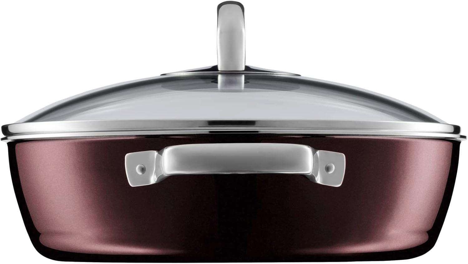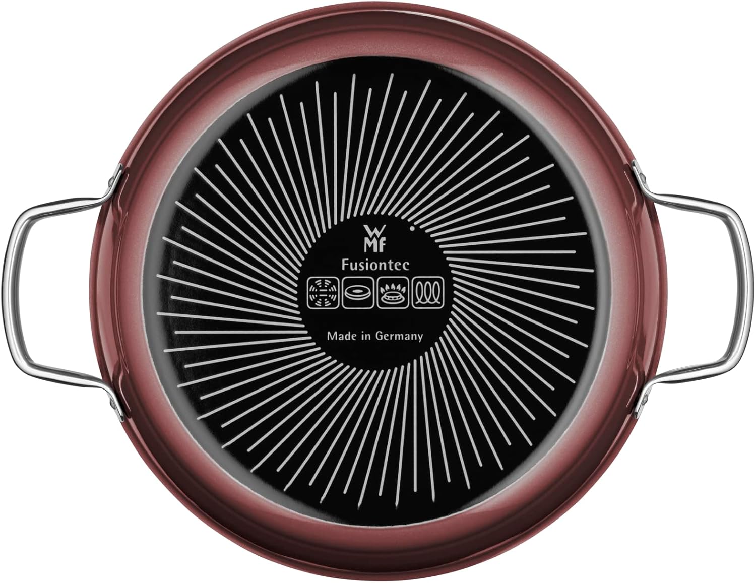 WMF Fusiontec Mineral Schmorpfanne 28 cm Induktion, Bräter mit Glasdeckel, Schmortopf 4,1l, hoher Rand, High-Tech Keramik, kratzfest, dunkelrot | قیمت یورویی 123.06€