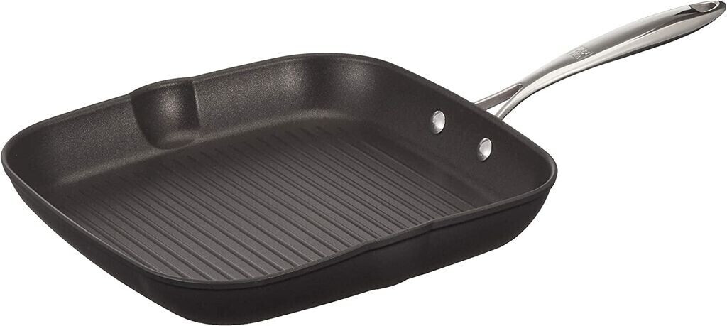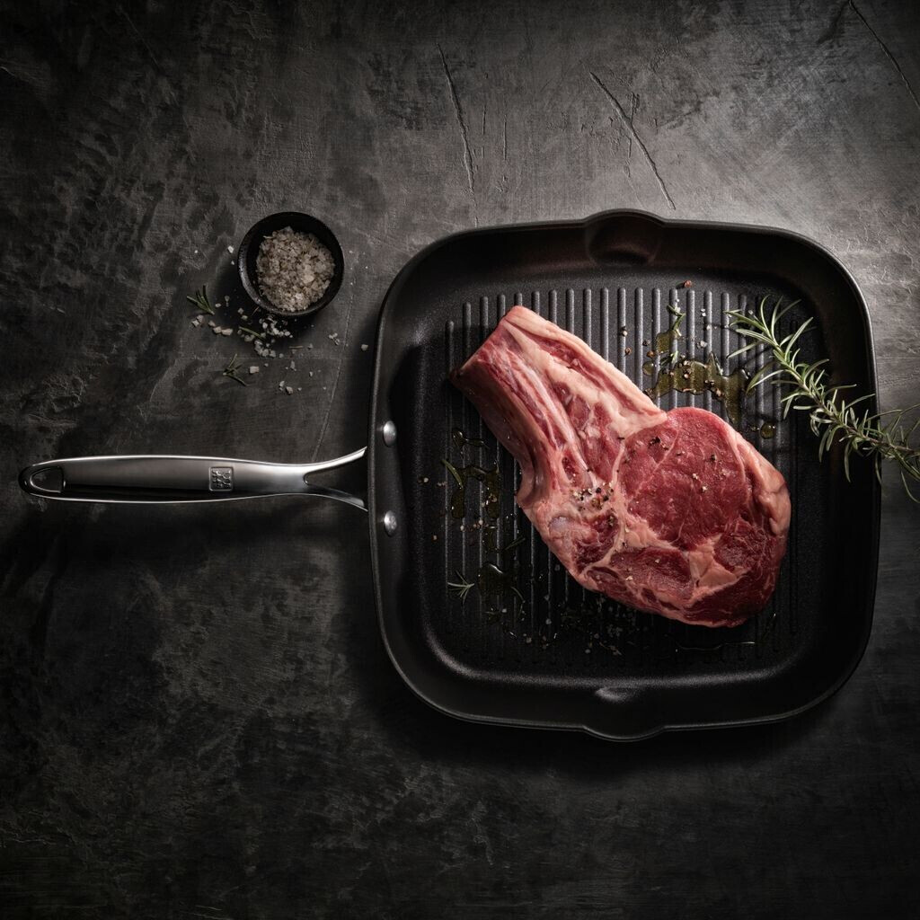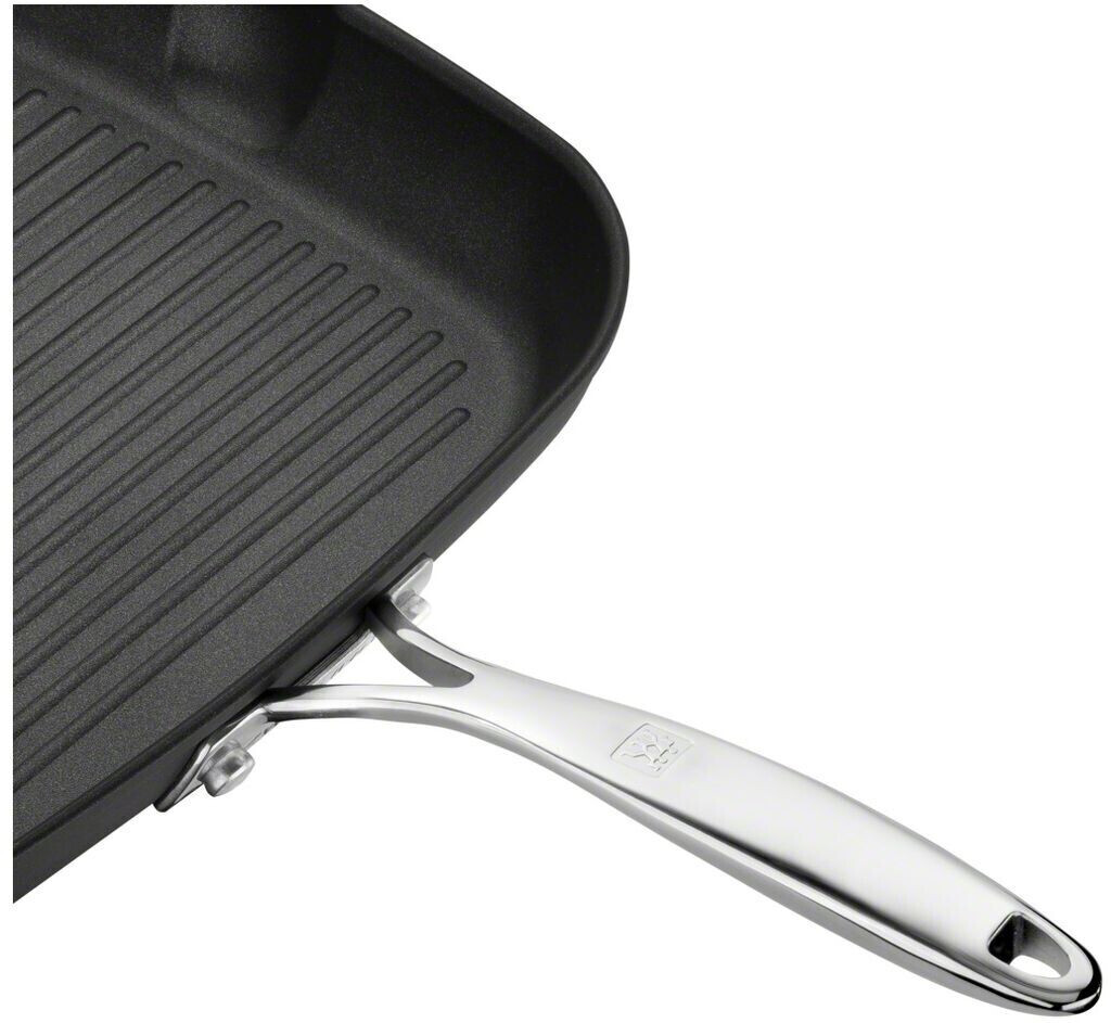 ماهیتابه گریل لبه بلند zwilling سری Forte با قطر 28 سانت، ساخته شده از آلومینیوم سختکاری شده با روکش نچسب مقاوم، مناسب برای گریل کردن انواع گوشت، مرغ، سبزیجات و استیک با توزیع یکنواخت حرارت.
