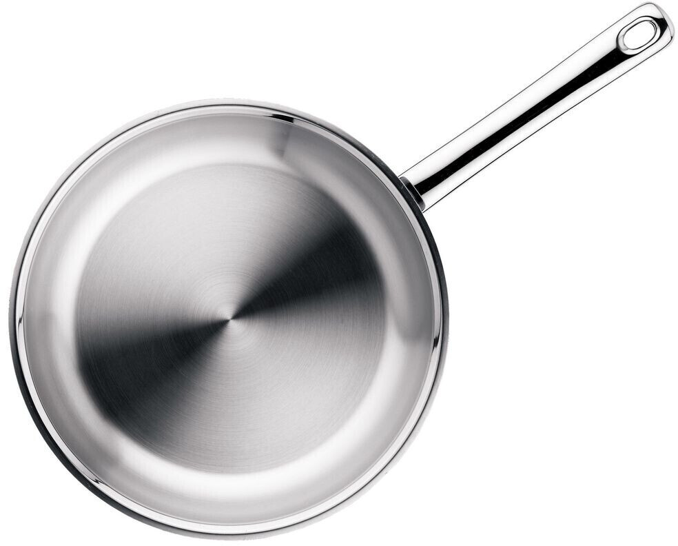 ماهیتابه WMF Profi ۲۴ سانتیمتری از استیل ضدزنگ کرومارگان ساخته شده و با کف TransTherm® حرارت را به طور یکنواخت توزیع میکند.