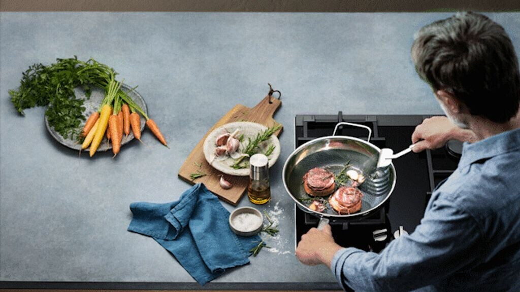 ماهیتابه WMF ProfiResist Stielpfanne با قطر ۲۴ سانتیمتر، انتخابی عالی برای سرخ کردن حرفهای است. این تابه دارای روکش نیمه نچسب است که از چسبیدن غذا جلوگیری کرده و در عین حال مقاومت بالایی در برابر خط و خش دارد. ساخته شده از استیل ضدزنگ کرومارگان® 18/10 با کف لانهزنبوری که موجب توزیع یکنواخت حرارت و عملکرد عالی روی تمامی اجاقها، از جمله القایی میشود. دسته استیل مقاوم در برابر حرارت، امکان جابهجایی آسان را فراهم میکند.