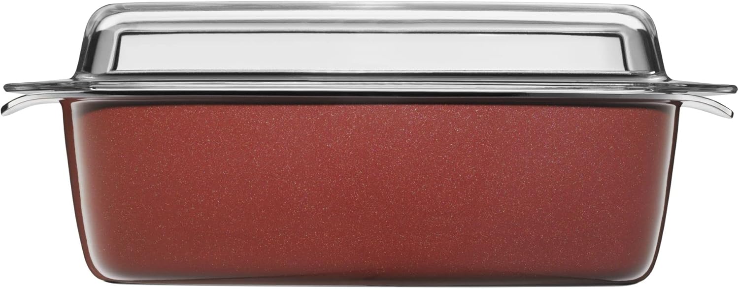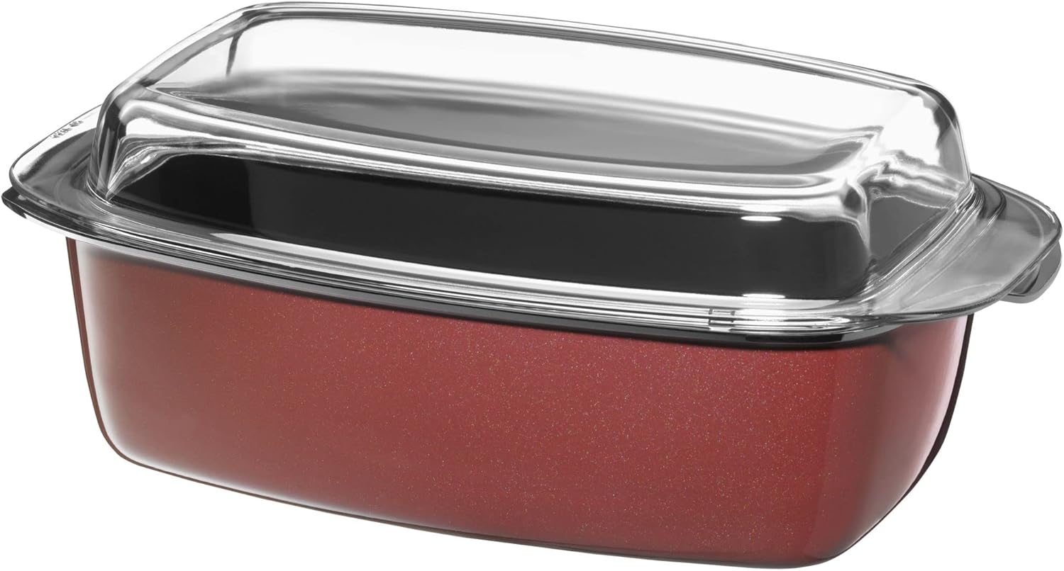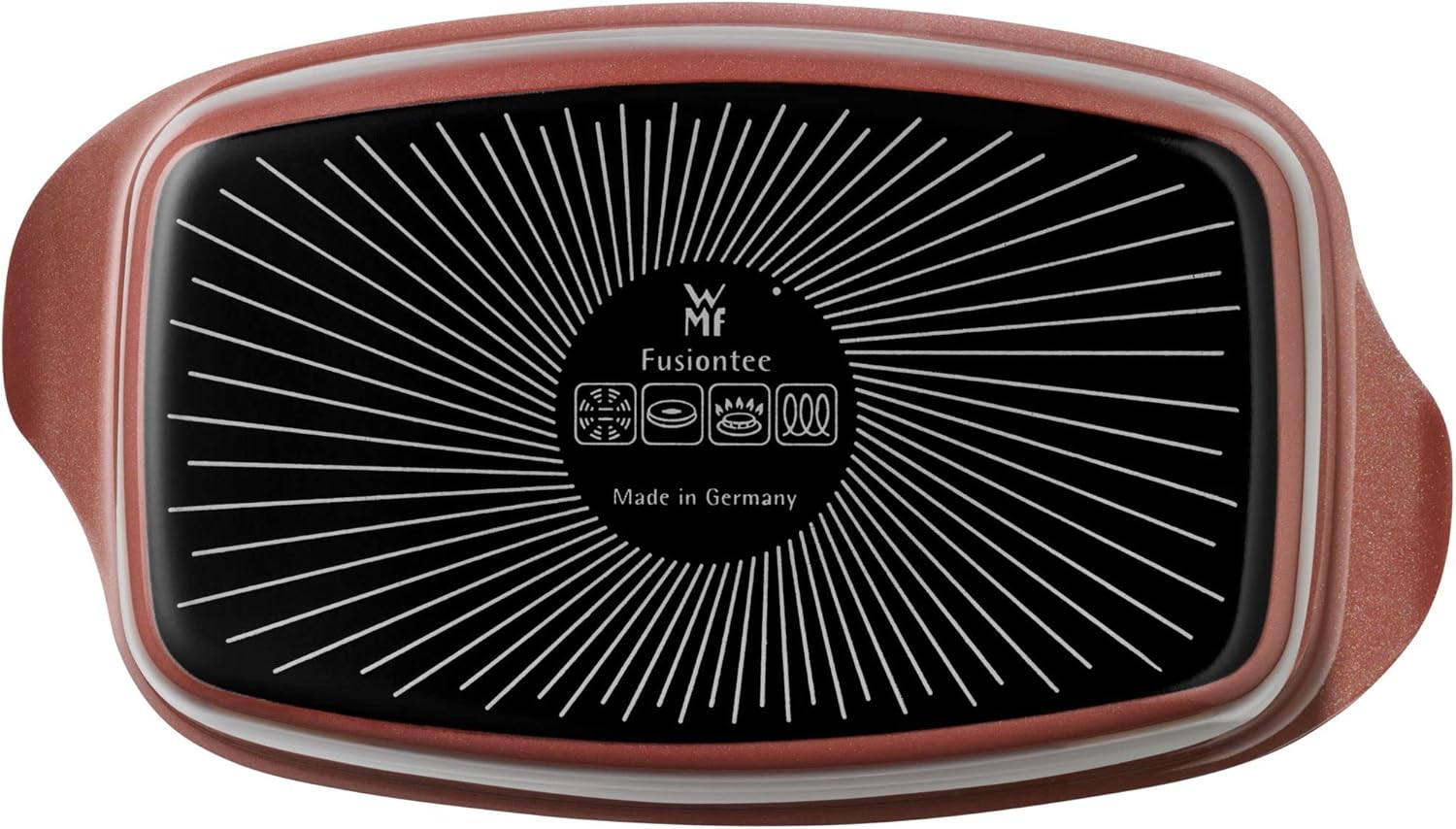 ماهیتابه WMF Fusiontec، مستطیل شکل، 32 × 21 سانتیمتر، برشته کردن عالی، پخت یکنواخت، مقاوم در برابر خراش، تمیز کردن آسان، مناسب برای فر، درب چند منظوره، رز کوارتز قرمز