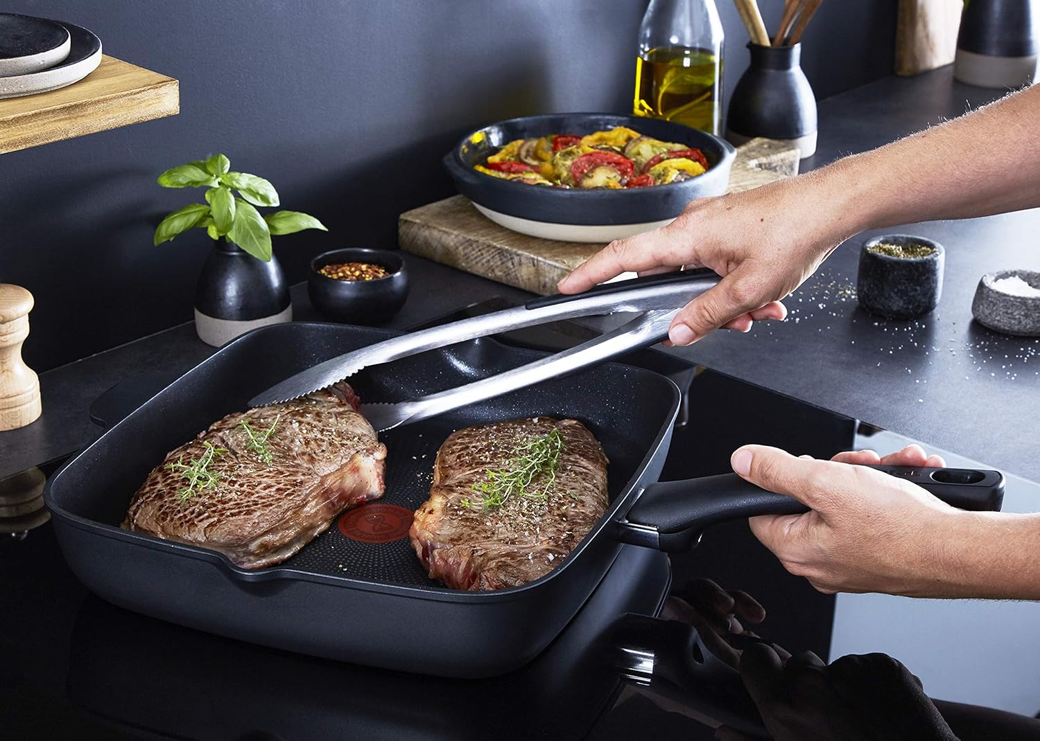 ماهی تابه مربع عمیق تفال Ultimate، تابه القایی آلومینیومی ریخته گری با روکش نچسب، سیگنال حرارتی در دمای ایده آل سرخ کردن، تمیز کردن آسان، مناسب برای انواع اجاق گاز، E23540