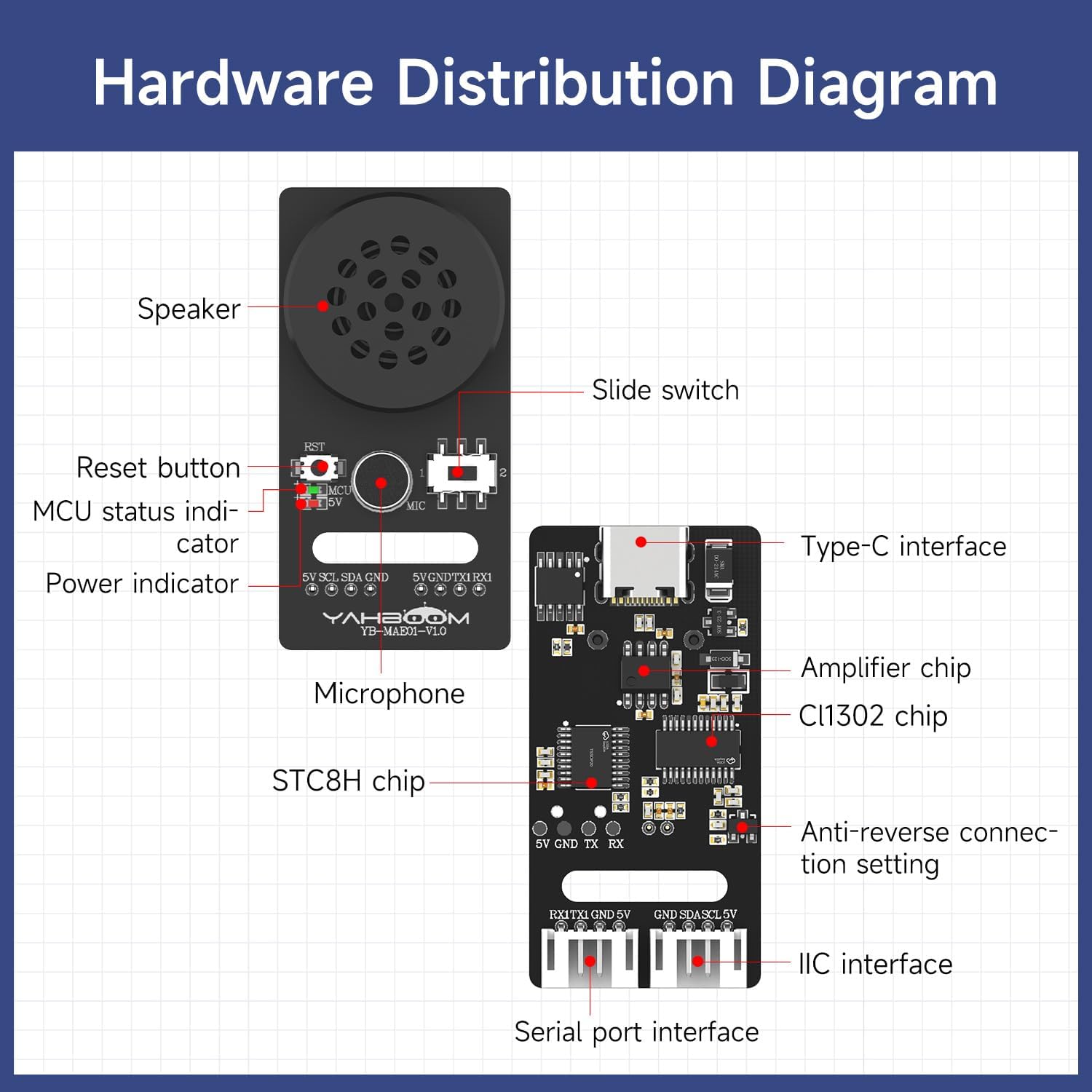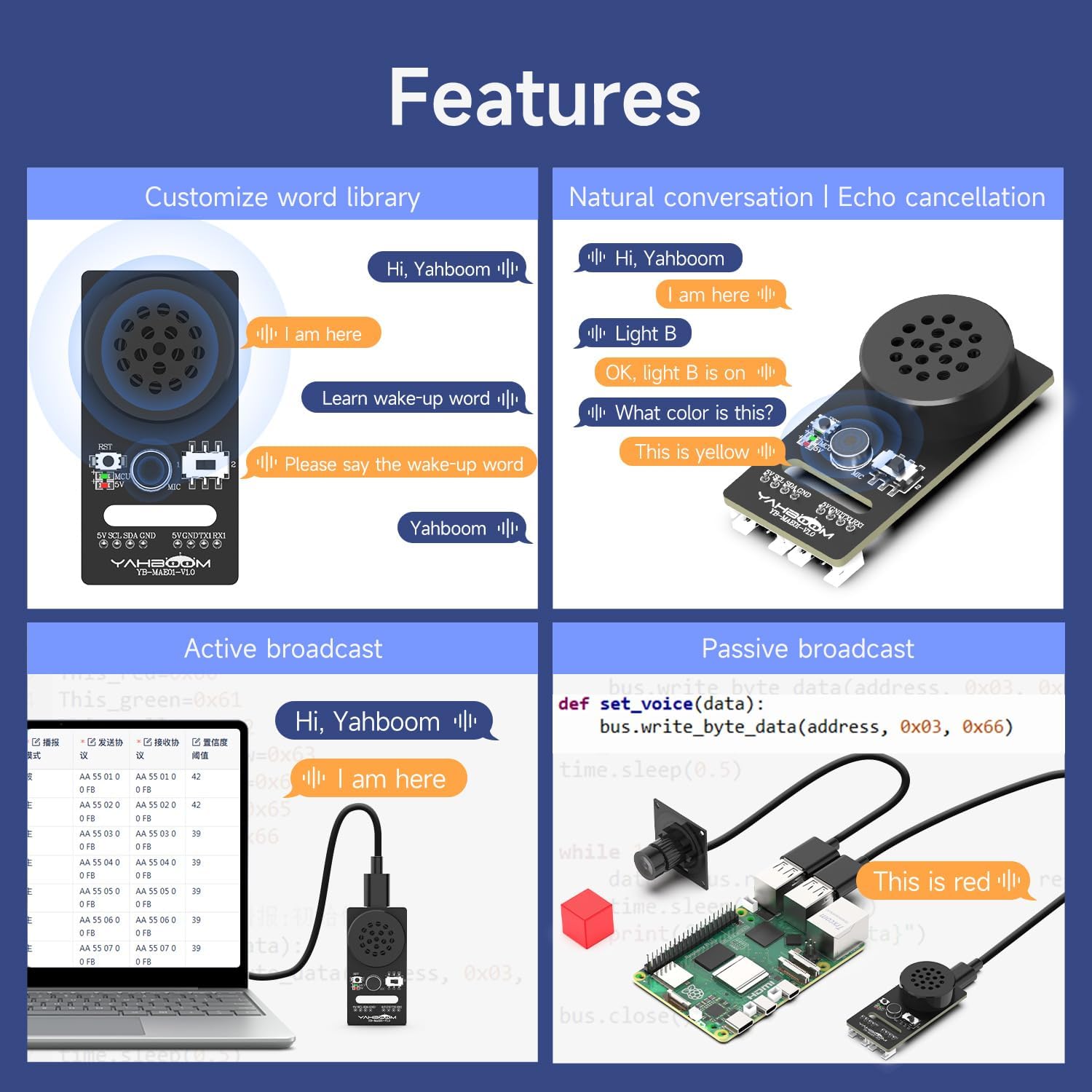 Yahboom AI Voice Interaction Module, Voice Recognition and Broadcasting Functions, Custom English Voice Commands, Support ROS1, ROS2, Support Jetson/Raspberry Pi/ESP32/STM32 | قیمت یورویی 18.99€