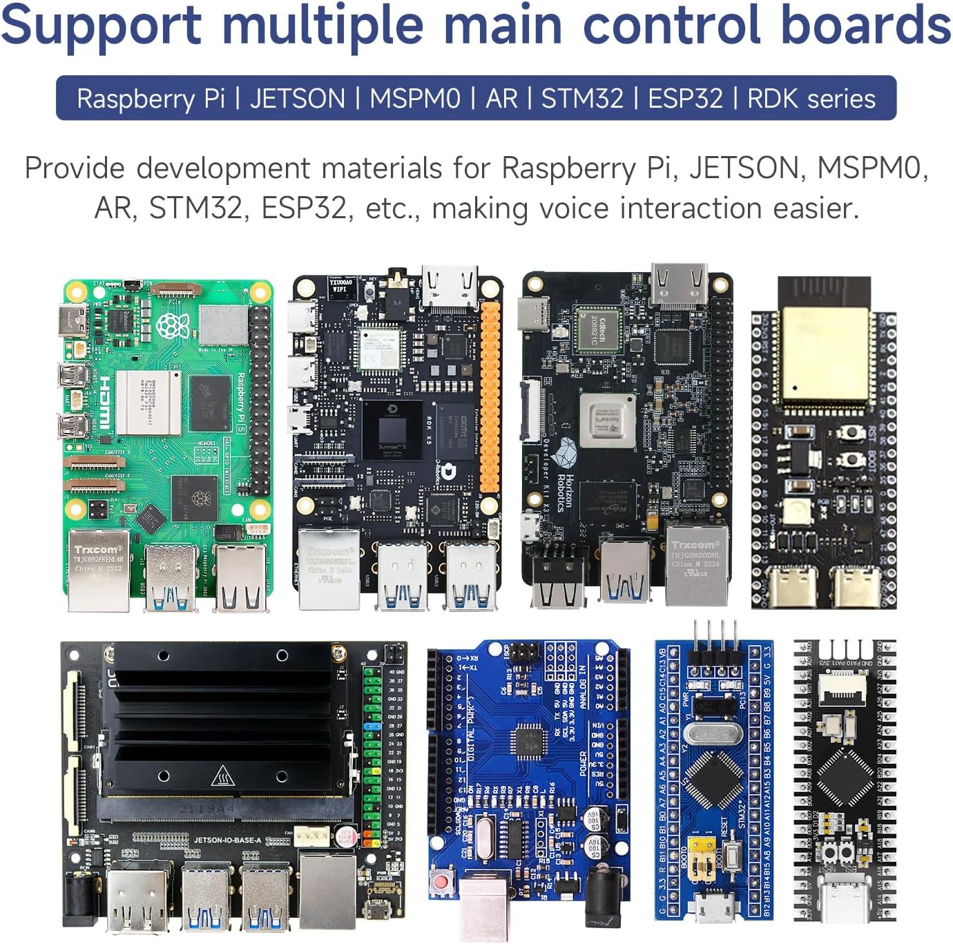[Powerful English/Chinese voice interaction module] It has both voice recognition and broadcasting functions, uses high-fidelity speakers and high-performance microphones, supports English and Chinese, has strong echo cancellation and environmental noise reduction capabilities, can recognize voice commands within a range of 5 meters, and the actual recognition accuracy rate is as high as 99%. [Flexible, rich voice command library] Supports voice modification of wake-up words directly, without text input. There are more than 110 preset English voice interaction commands, which can be connected to the computer via the Type-C interface. It supports custom modification of English/Chinese voice commands and broadcast voice types. Command changes can be completed after burning the new firmware, which is convenient and fast. [Connection and Usage] The Type-C interface can be directly connected to embedded master controllers such as Raspberry Pi through the USB port without driver, reducing pin occupancy; it supports communication with external controllers through serial port or IIC, and multiple communication methods are suitable for most master controllers. [Strong installation compatibility] The horizontal bar holes can adapt to the holes of different robot car brackets and can be installed flexibly. Comes with a variety of connection cables (PH2.0 to DuPont cable, double-head cable, Type-C cable) [Fully compatible development support] Provides development board information such as STM32, ESP32, Ard-uin-o, Raspberry Pi, Jetson Nano, Jetson Orin, etc., supports ROS1/ROS2 system SDK, and meets the development needs of multiple scenarios such as smart hardware, robots, and homes. | قیمت یورویی : 18.99€