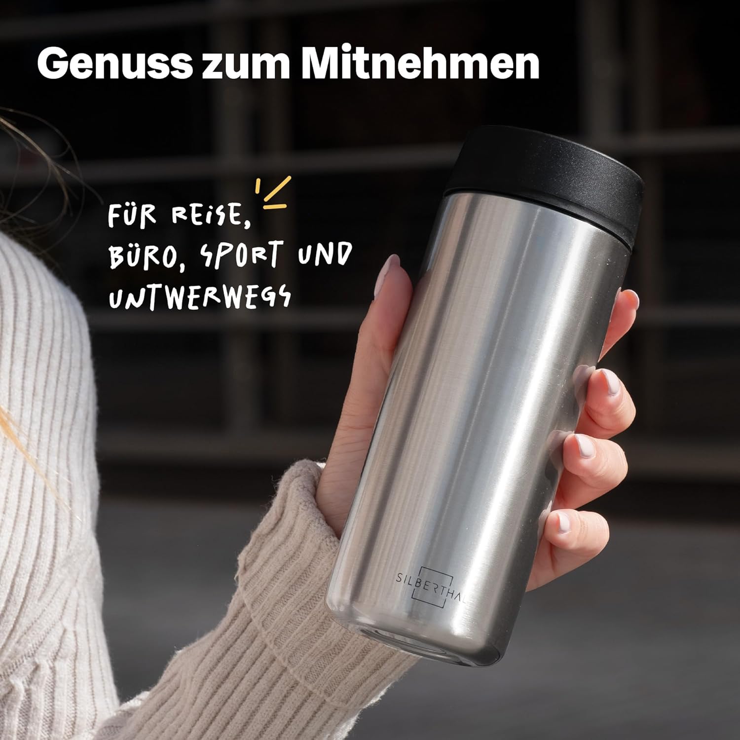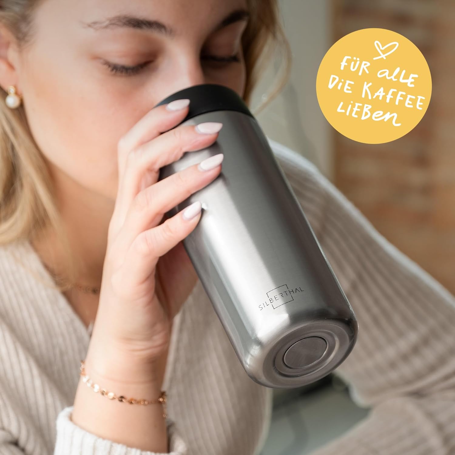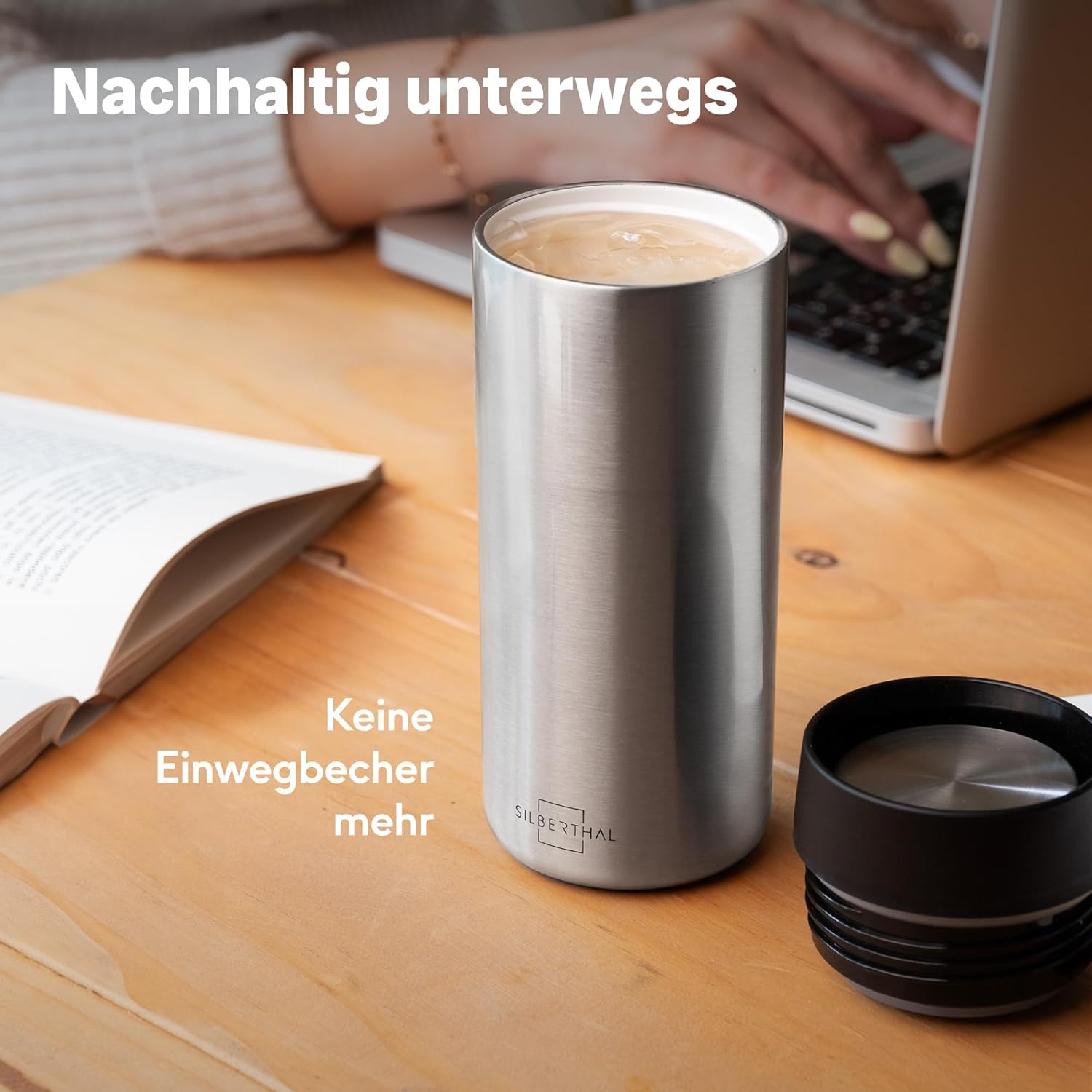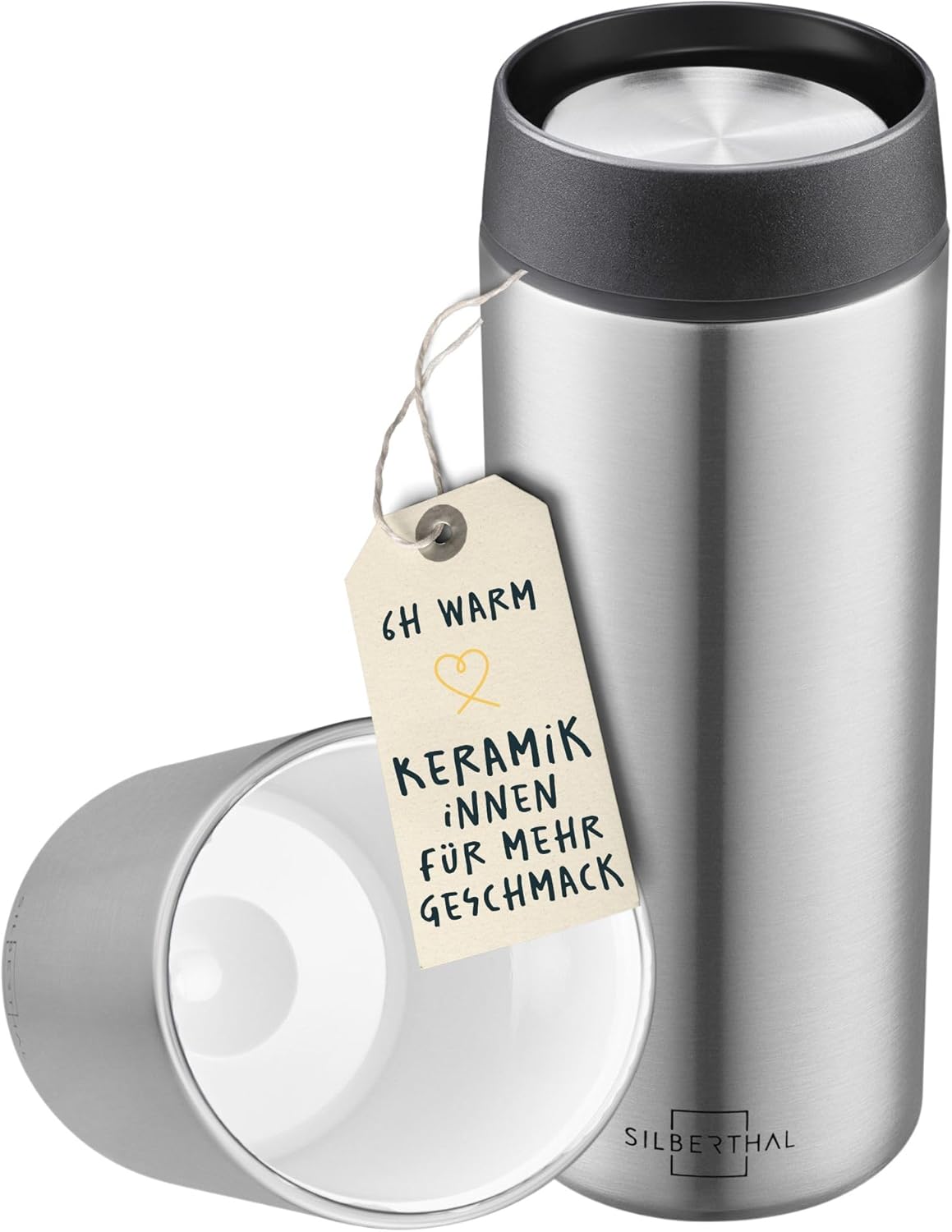 SILBERTHAL Thermobecher 350ml Edelstahl – Auslaufsicherer Kaffeebecher to go mit Keramik – Thermobecher Keramik - Coffee Cup in Silber - Bis zu 6h warm | قیمت یورویی 19.95€