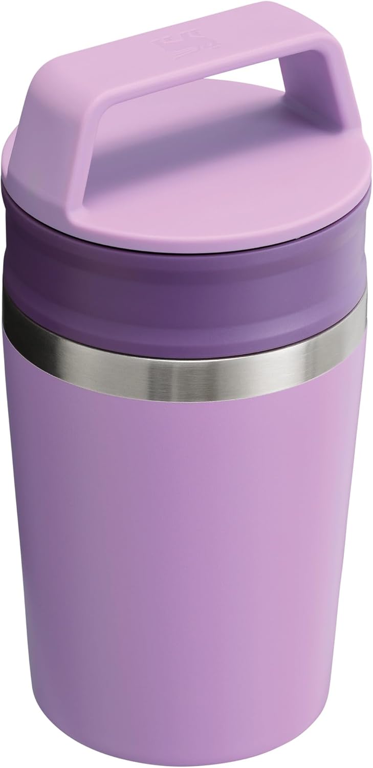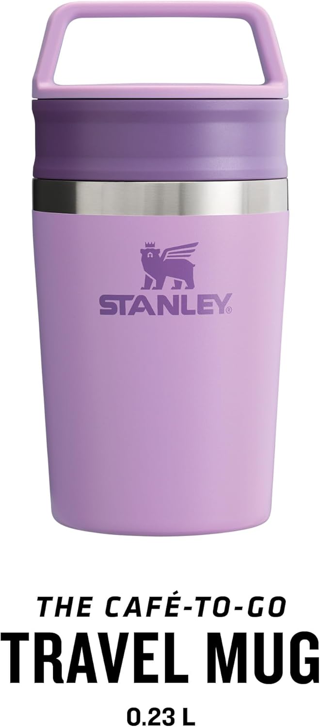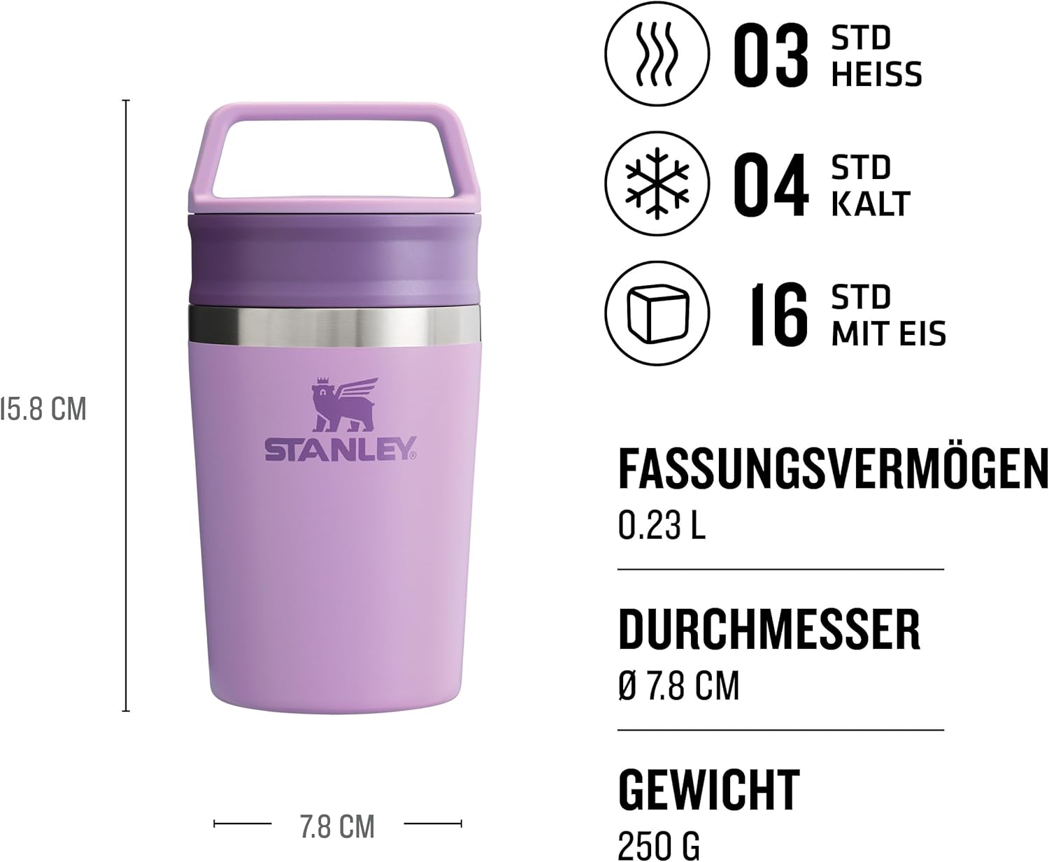 Stanley Cafe Kaffeebecher To Go 0.23L - Hält 3 Stunden Heiß - 4 Stunden Kalt - Edelstahl Thermobecher - Spülmaschinenfest - Einfacher Tragegriff - Coffee To Go Becher - Lilac | قیمت یورویی 34.69€