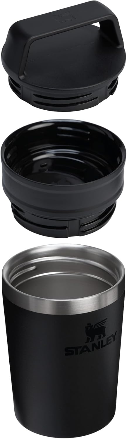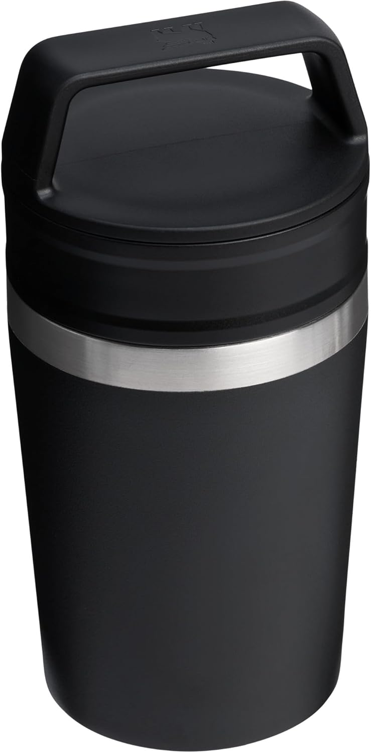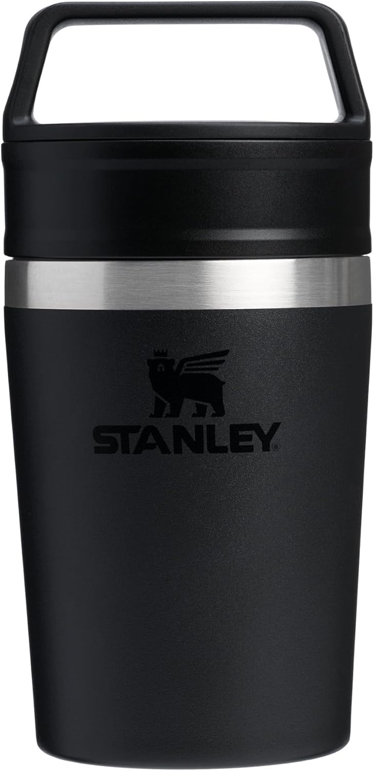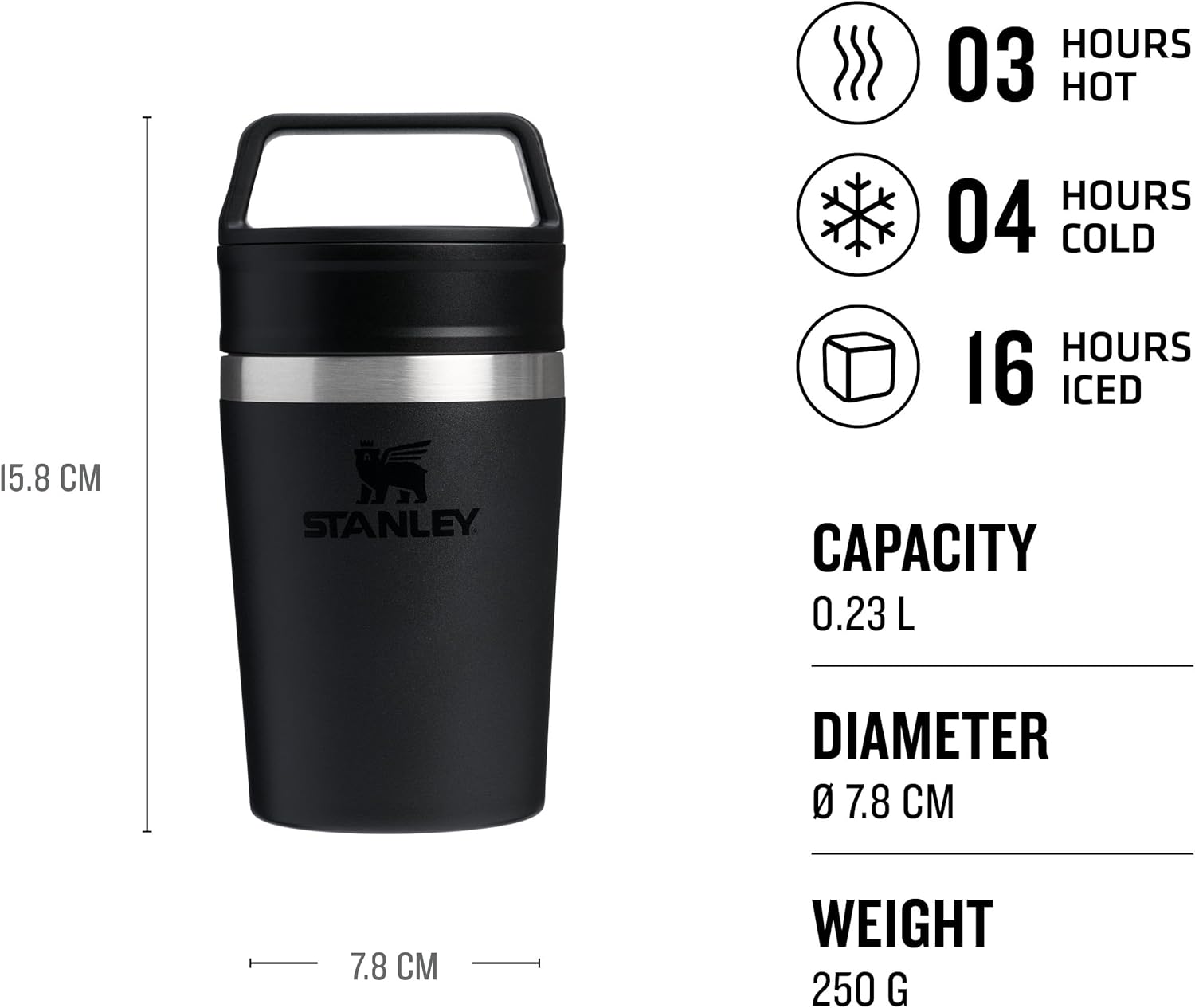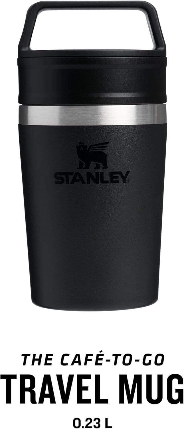 ماگ قهوه Stanley Cafe To-Go 0.23 لیتر - 3 ساعت گرم - 4 ساعت سرد - ماگ فلاسک استیل ضد زنگ - قابل شستشو در ماشین ظرفشویی - دسته حمل آسان - ماگ قهوه To-Go - مشکی
