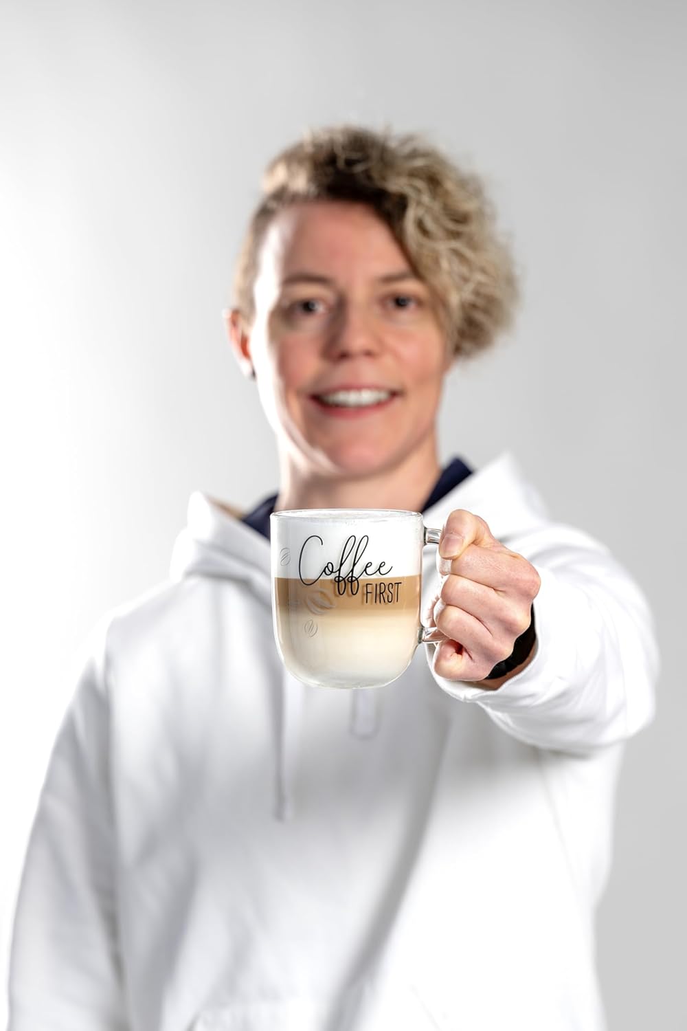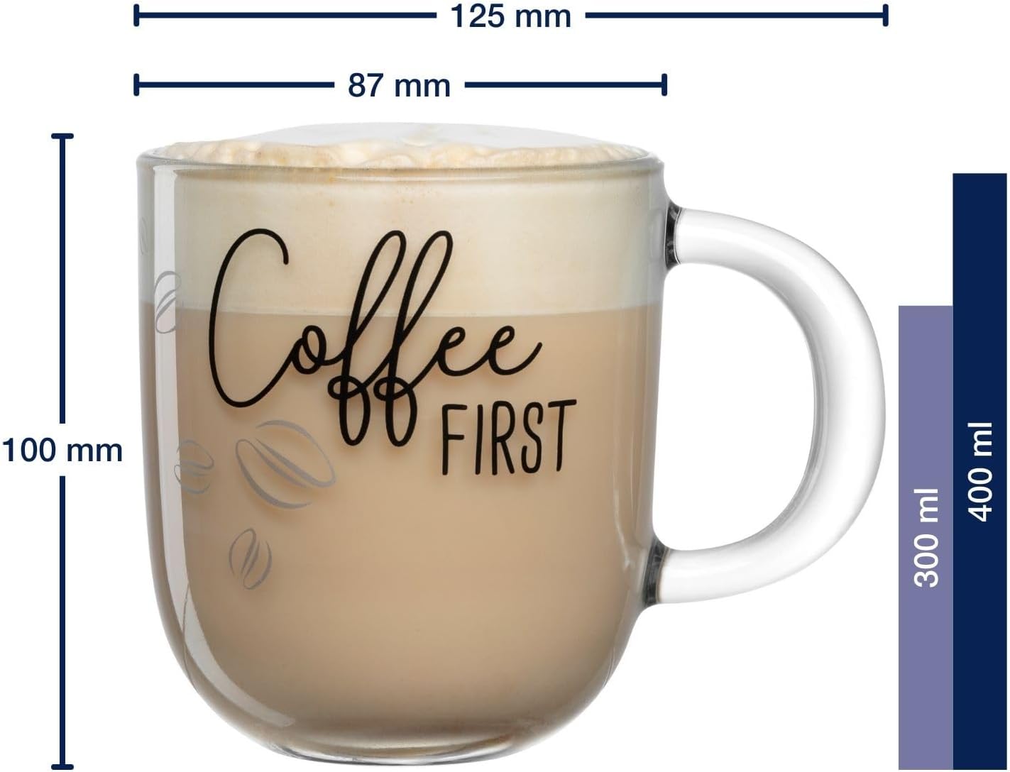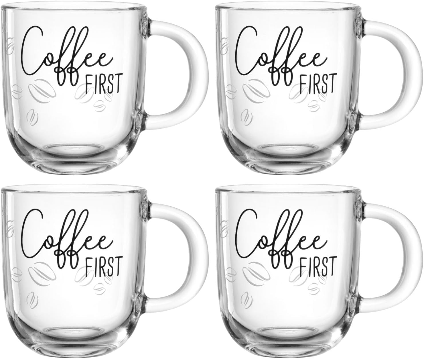 ماگ LEONARDO HOME Ufficio COFFEE FIRST، ست ۴ عددی، ست ماگ قابل شستشو در ماشین ظرفشویی، ماگهای قهوه مدرن و باکیفیت برای محل کار، ست فنجان چای شیشهای روزمره، ۴۰۰ میلیلیتر، ۰۴۷۰۷۷