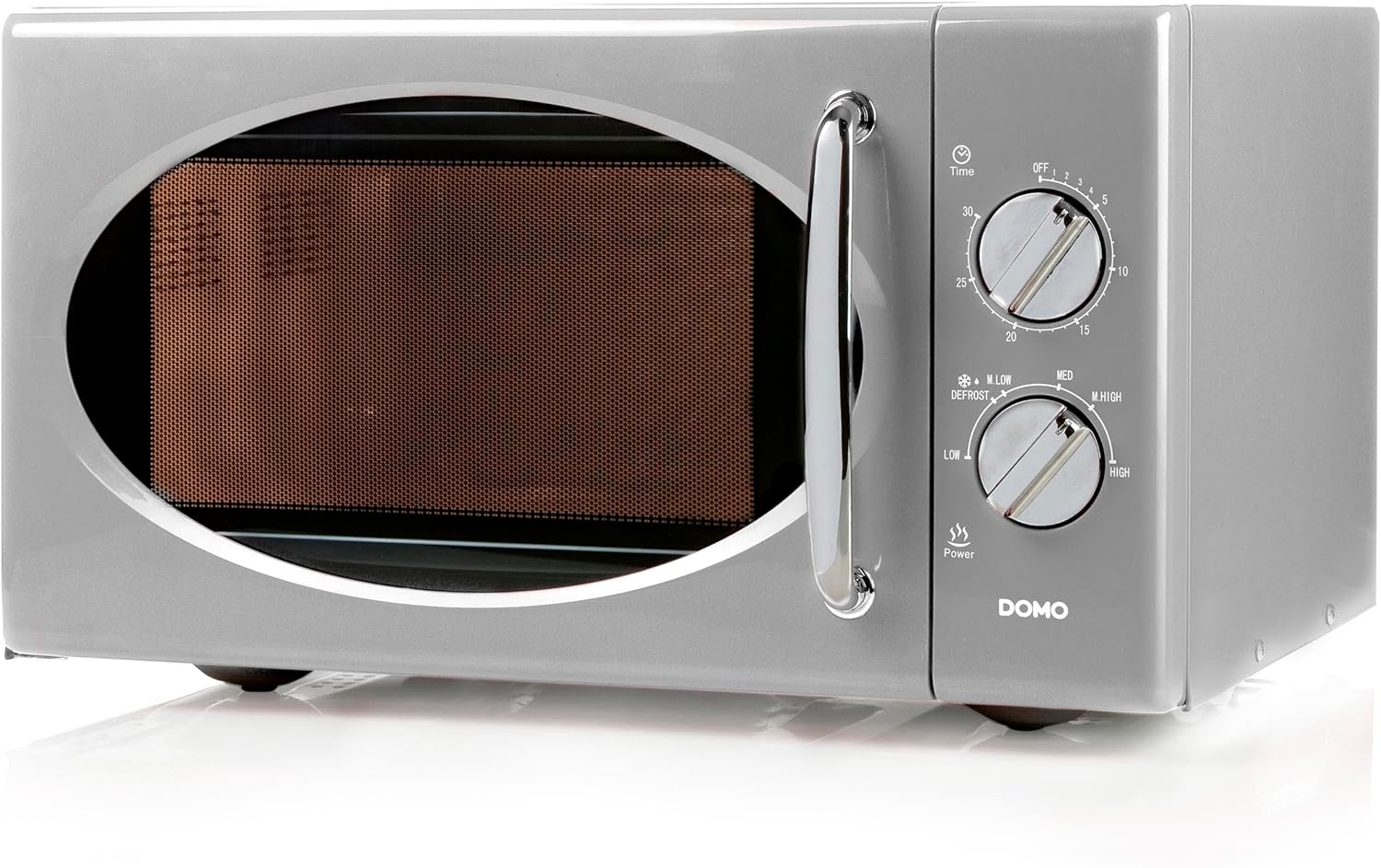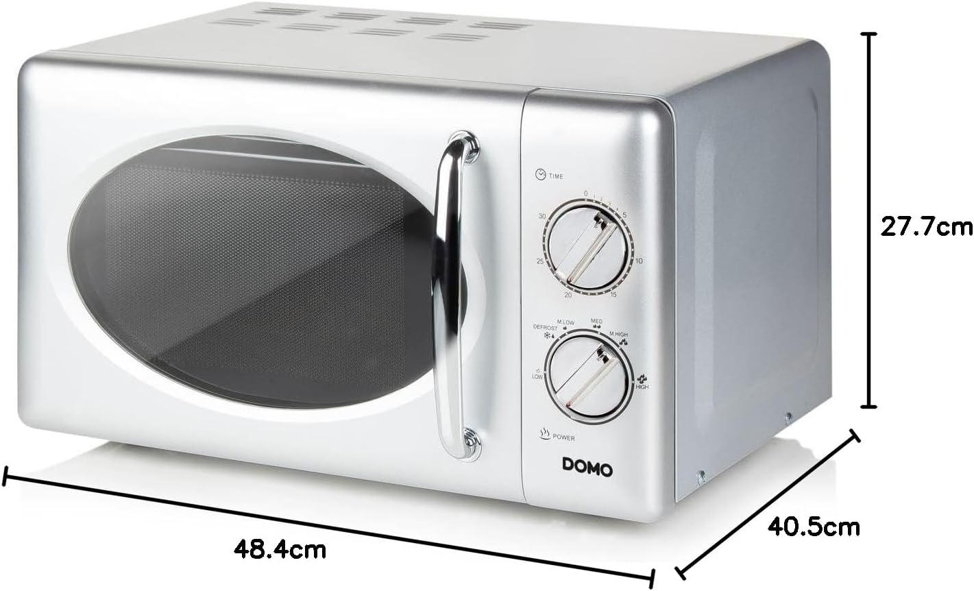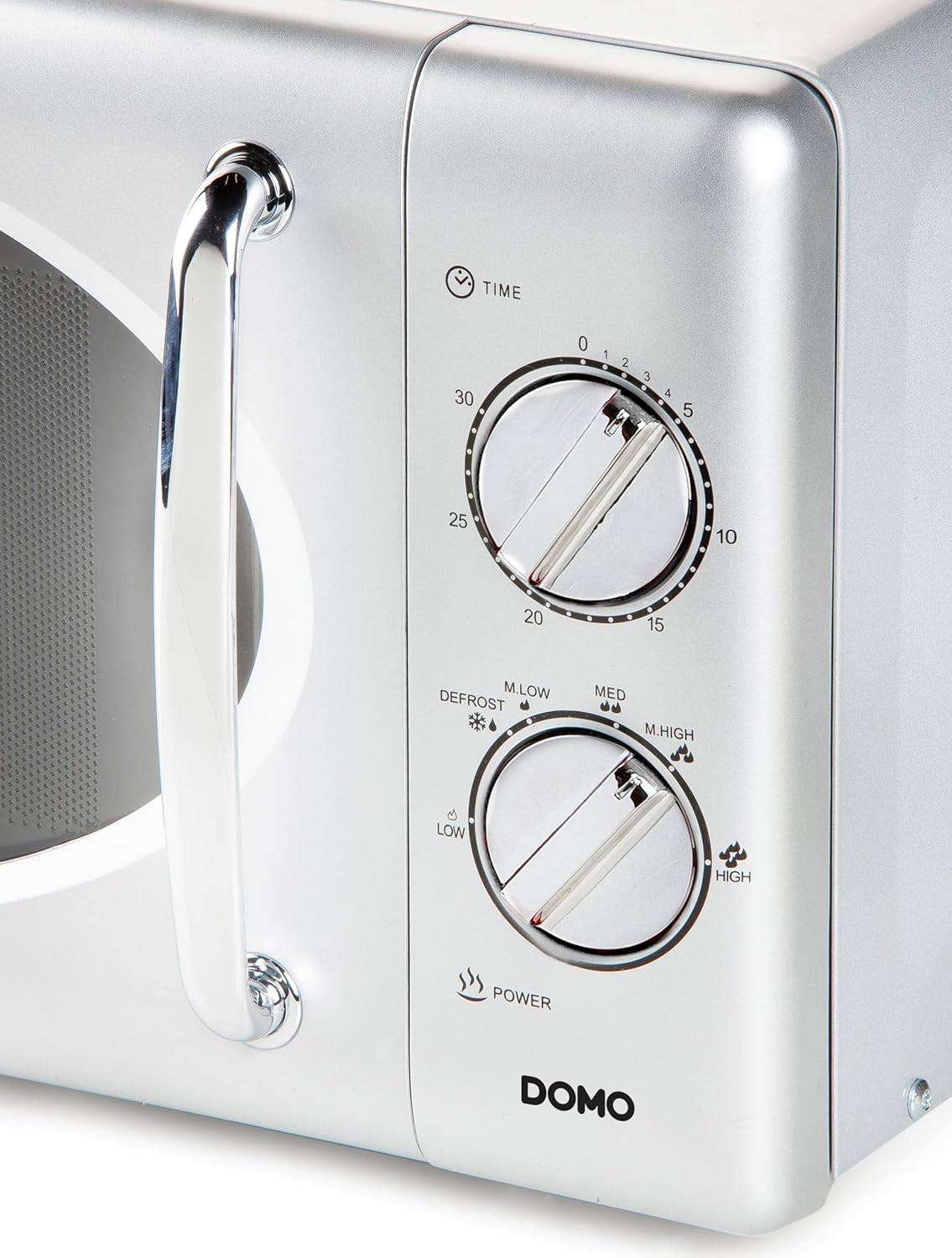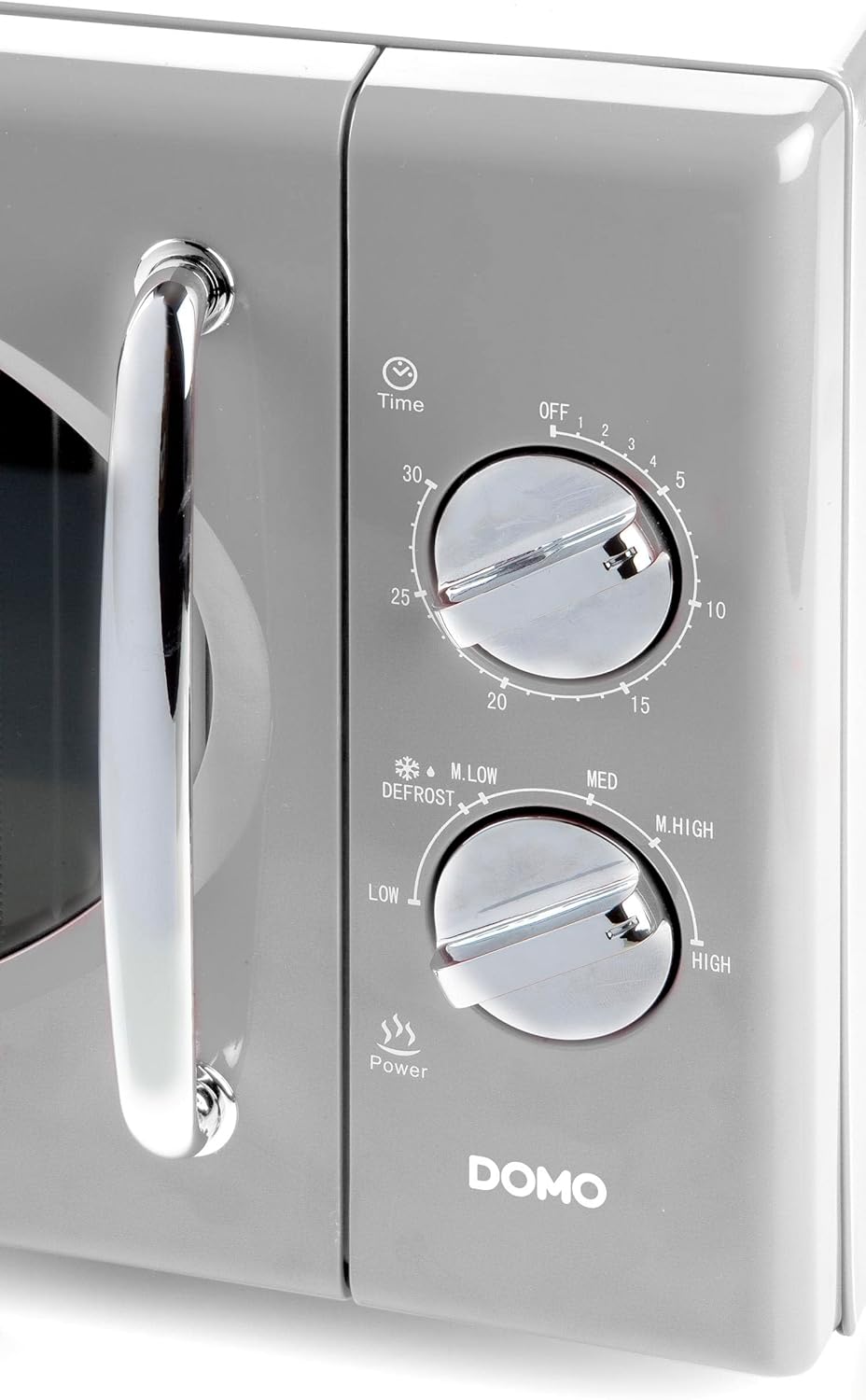 مایکروویو ایستاده DOMO DO3025 مدل رترو - 6 سطح قدرت - عملکرد مکانیکی - دارای تایمر تا 30 دقیقه - قابلیت یخزدایی - 25 لیتر - 900 وات - نقرهای/خاکستری