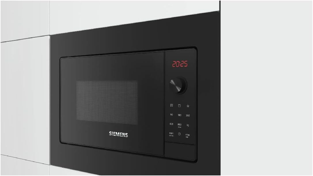 Siemens BE623LMB3 iQ300 Einbau-Mikrowelle, Schwarz, cookControl8 - Automatikprogramme, humidClean Plus - Innenraumreinigung, Grill-Funktion 20 Liter I Schwarz | قیمت یورویی 299€