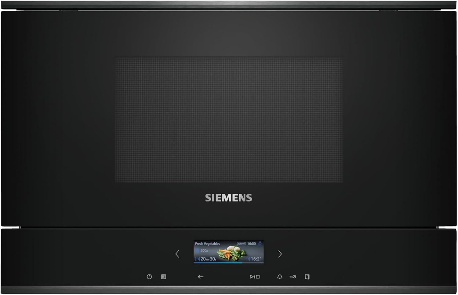Siemens BF722L1B1 iQ700 Einbau-Mikrowelle, cookControl7 - Automatikprogramme, humidClean Plus - Innenraumreinigung, optimal für den Hocheinbau, seitlich öffnende Drehtür, Schwarz | قیمت یورویی 583.8€