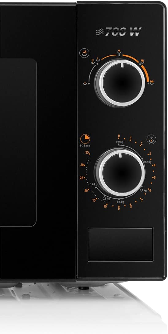 Klassisches Design mit mechanischer Bedienung Auftau-, Aufwärm- und Kochfunktion 5 Leistungsstufen Innenraumbeleuchtung Timer einstellbar bis zu 35 Minuten | قیمت یورویی : 100.38€