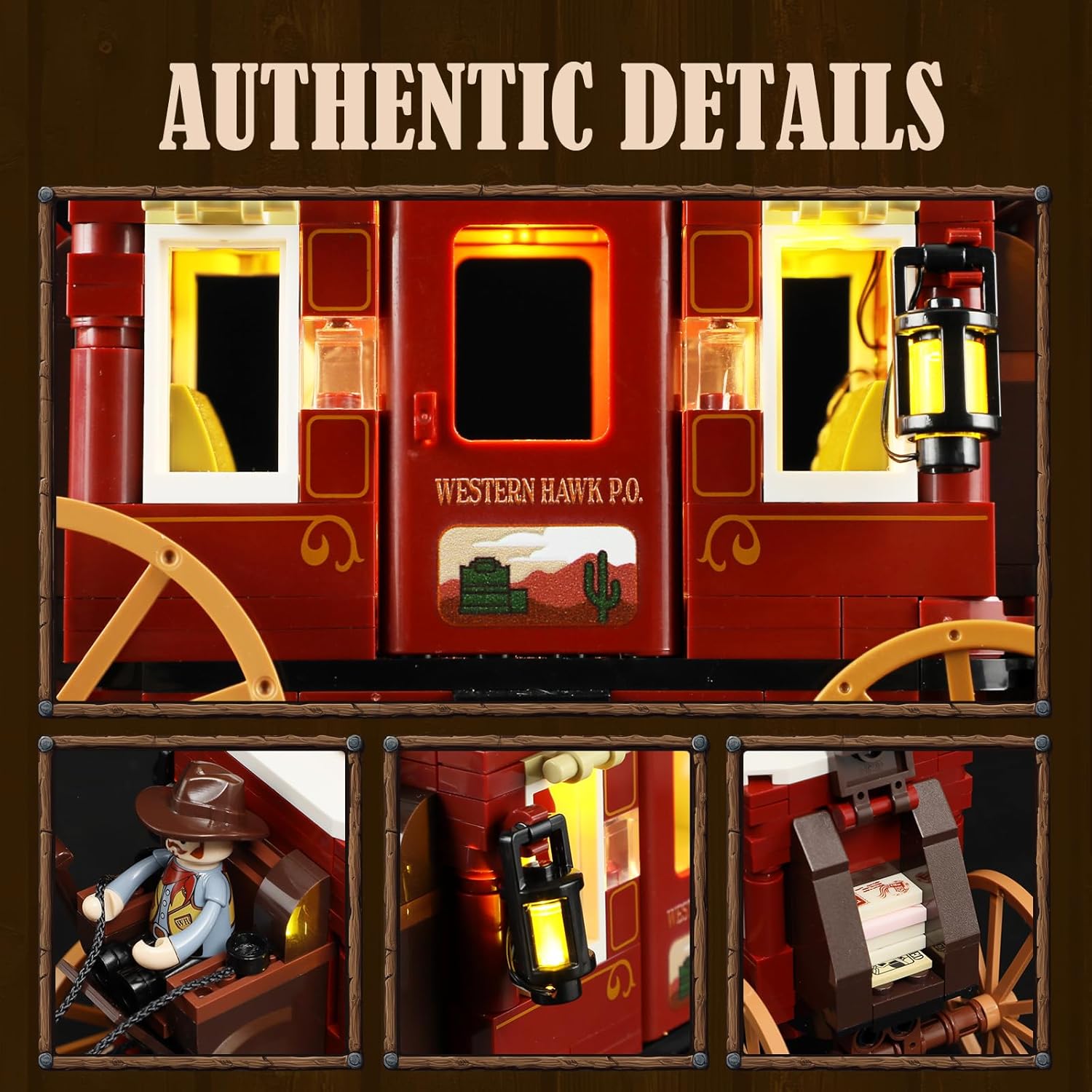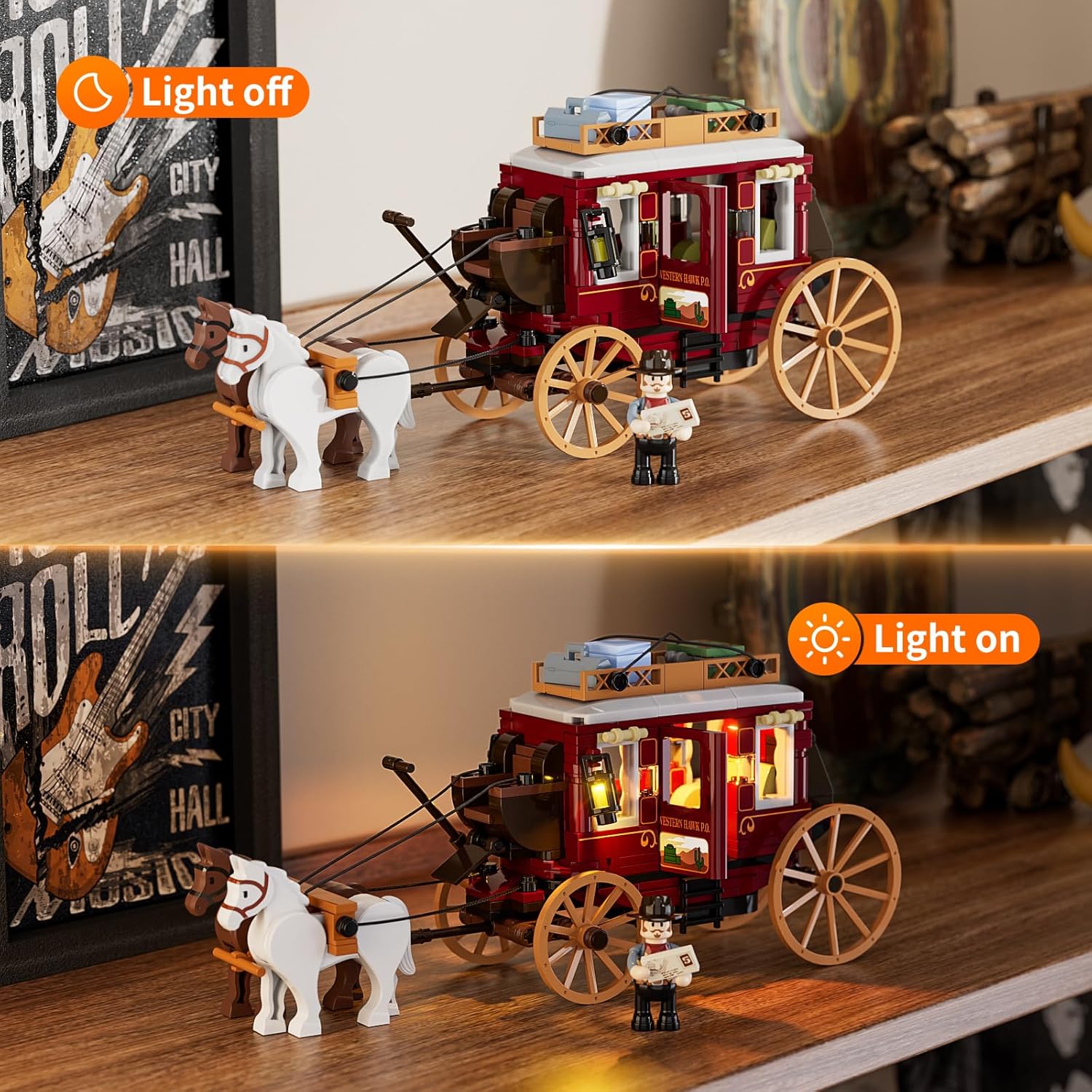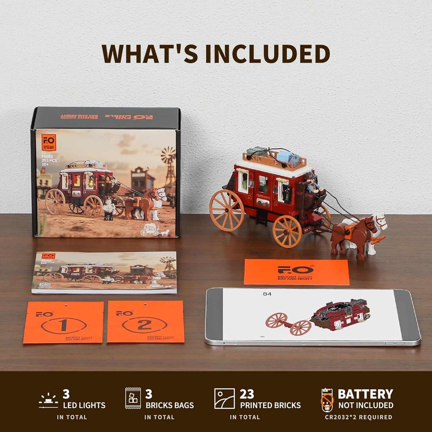 FUNWHOLE Western Stagecoach Beleuchtungsstein-Set – Alter Westwagen und Pferd, 293 Teile, Sammlerstück für Westernliebhaber | قیمت یورویی 29.99€