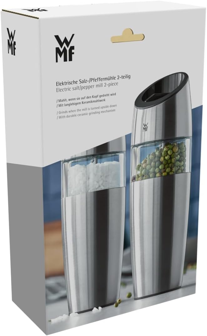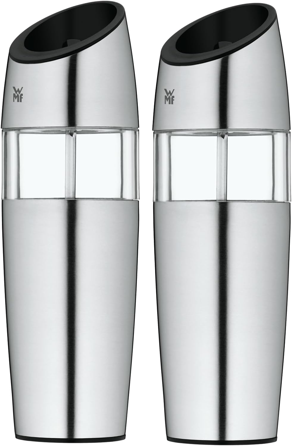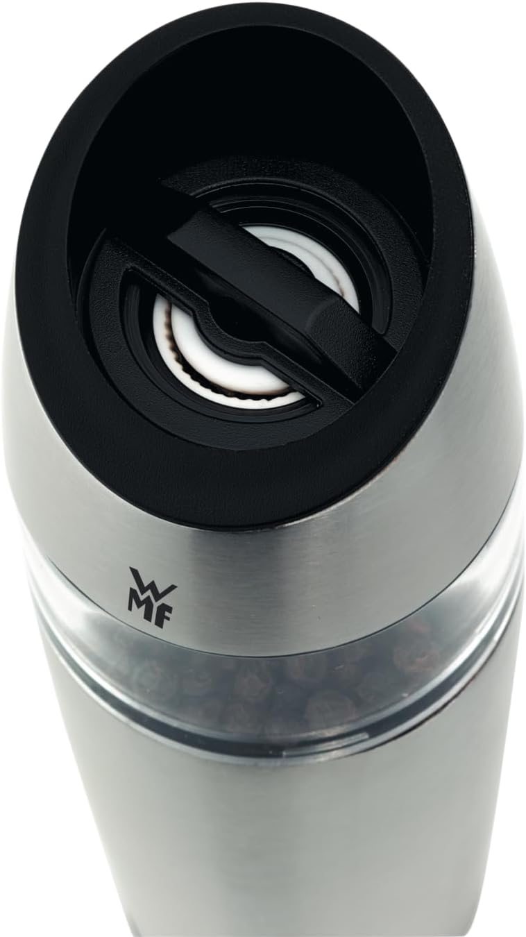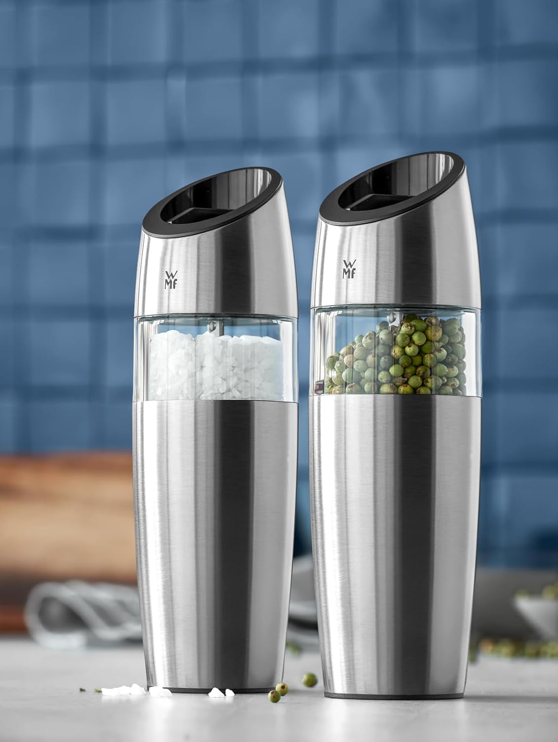 WMF Elektrische Kippmühle Set 2-teilig, 20 cm, Salz und Pfeffermühle elektrisch, unbefüllt Cromargan, Edelstahl matt Glas, Keramikmahlwerk Single | قیمت یورویی 98.56€