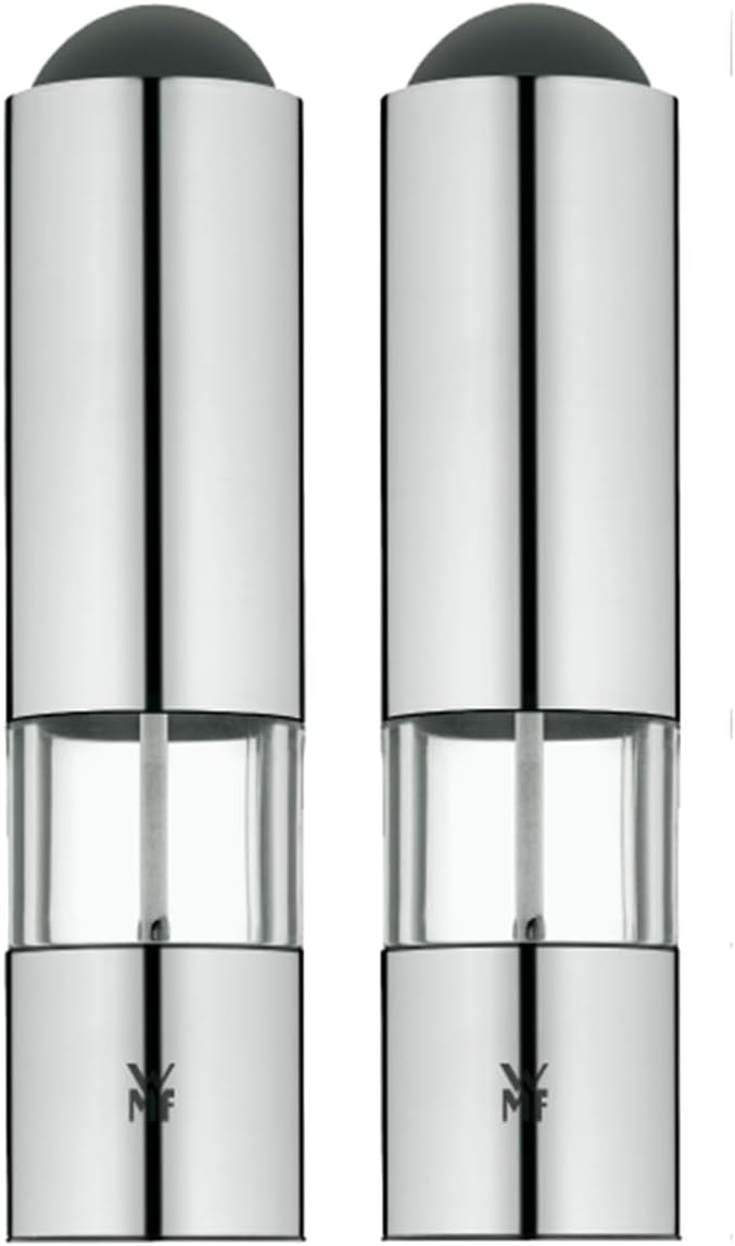 WMF Elektrische Mühle Set 2-teilig, 21 cm, elektrische Salz und Pfeffermühle unbefüllt, LED-Leuchte, Cromargan Edelstahl matt, Glas, Keramikmahlwerk Single | قیمت یورویی 84.81€