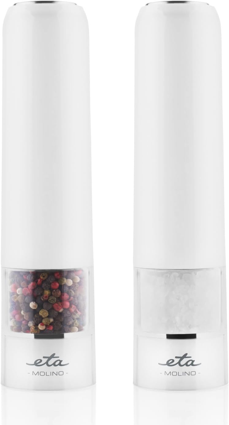 مجموعه آسیاب نمک و فلفل ETA، مولینو، برقی، دارای محفظه پلاستیکی با کیفیت بالا، دارای چراغ برای قسمت زیر آسیاب