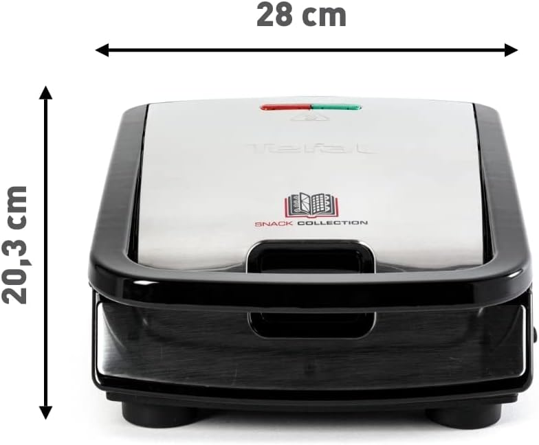 Tefal Snack Collection 4-er Set SW854D | Kombigerät | Inklusive 4 antihaftbeschichter Plattensets | Spülmaschinengeeignet | Panini, Waffeln, Sandwich, süße Küchlein | 700W |Schwarz/Edelstahl لینک آمازون : https://www.amazon.de/dp/B015SJQ7KY?th=1&psc=1 دستگاه چند منظوره به لطف صفحات قابل تعویض، برای تطبیق پذیری زیاد در فضای کوچک شامل 4 ست بشقاب برای پانینی، وافل، ساندویچ و کیک شیرین، بشقاب های اضافی موجود به عنوان لوازم جانبی صفحات با روکش نچسب قابل شستشو در ماشین ظرفشویی هستند بشقاب ها هر کدام یک جعبه ذخیره سازی کاربردی و کتابچه دستور العمل مخصوص به خود دارند ایمن برای استفاده به دلیل دسته عایق حرارت، چراغ نشانگر قدرت و دما و پایه های ضد لغزش