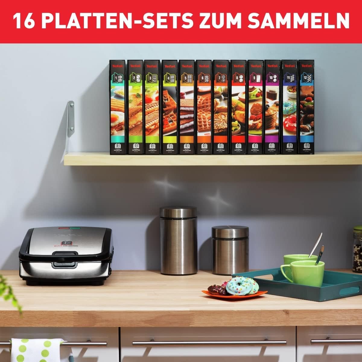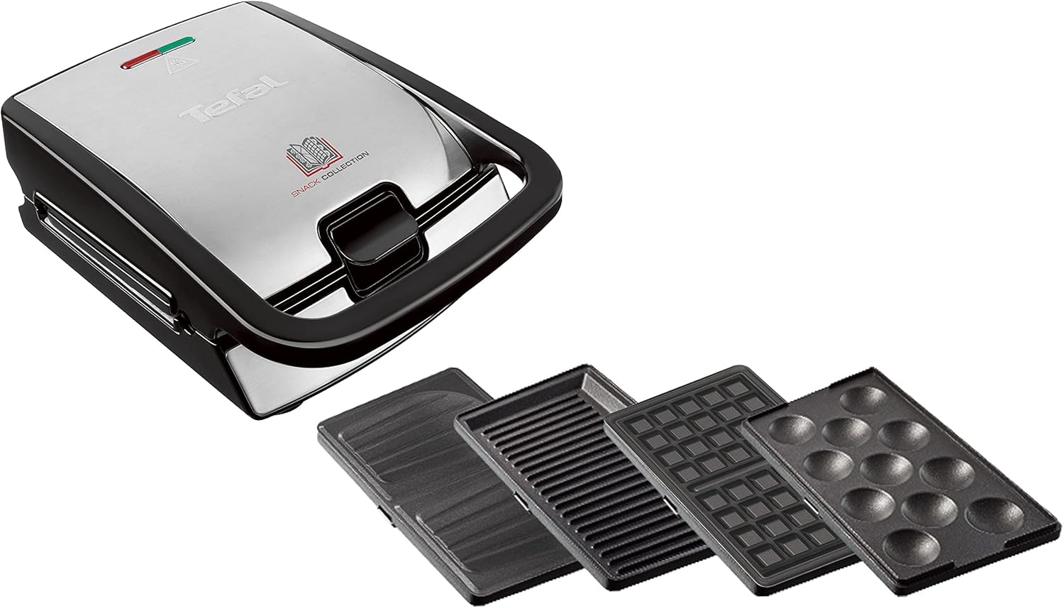 Tefal Snack Collection 4-er Set SW854D | Kombigerät | Inklusive 4 antihaftbeschichter Plattensets | Spülmaschinengeeignet | Panini, Waffeln, Sandwich, süße Küchlein | 700W |Schwarz/Edelstahl | قیمت یورویی 89.99€