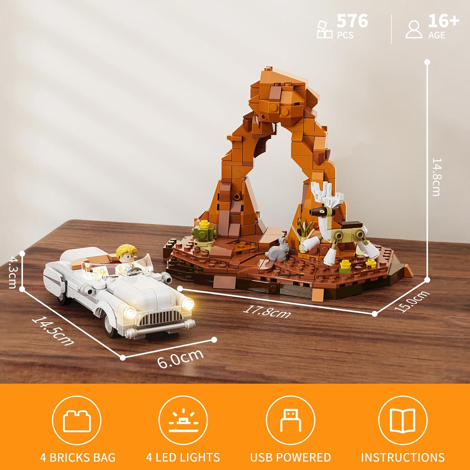 Nostalgisches Reiseset: Dieses Bauset zeigt eine Szene, in der ein Reh die Straße überquert. Es enthält einen klassischen Oldtimer und den berühmten Steintorbogen von Utah in den USA und weckt so perfekt Erinnerungen an Ihre eigenen Urlaubsabenteuer auf der Straße. Klassische Vintage-Heimeinrichtung: Dieses wunderschön gefertigte Set verfügt über stabile Bergstrukturen und eine Vielzahl beweglicher Pflanzen und Tiere und ist somit ein perfektes Dekorationsobjekt für Ihr Zuhause oder Ihren Schreibtisch im Büro. Hochkompatible Road-Serie: Dieses Set zeigt eine klassische Reiseszene aus Utah mit ikonischen Elementen wie Steinbögen, einem Oldtimer und einem Hirsch. Diese Teile können leicht mit anderen Sets kombiniert werden, um einzigartige Roadtrip-Abenteuer und lebendige Reiseerinnerungen nachzubilden. Exklusives Detaildesign: Dieses Set enthält ein realistisches graues Baumwollschwanzkaninchen und einen Großohrhirsch sowie ein luxuriöses amerikanisches Cabriolet mit kugelförmigen Scheinwerfern, einer Reisekarte für den Beifahrer und einer steilen Windschutzscheibe – alles perfekt für Ihren Roadtrip. Exklusive Beleuchtungsfunktionen (Batterien nicht enthalten): Das Set enthält vier Lichtpunkte, darunter zwei warmfarbige Scheinwerfer und zwei rote Bremslichter. Es ist einfach zusammenzubauen und ein perfektes Souvenir für alle, die ihre Roadtrip-Abenteuer schätzen. | قیمت یورویی : 43.99€