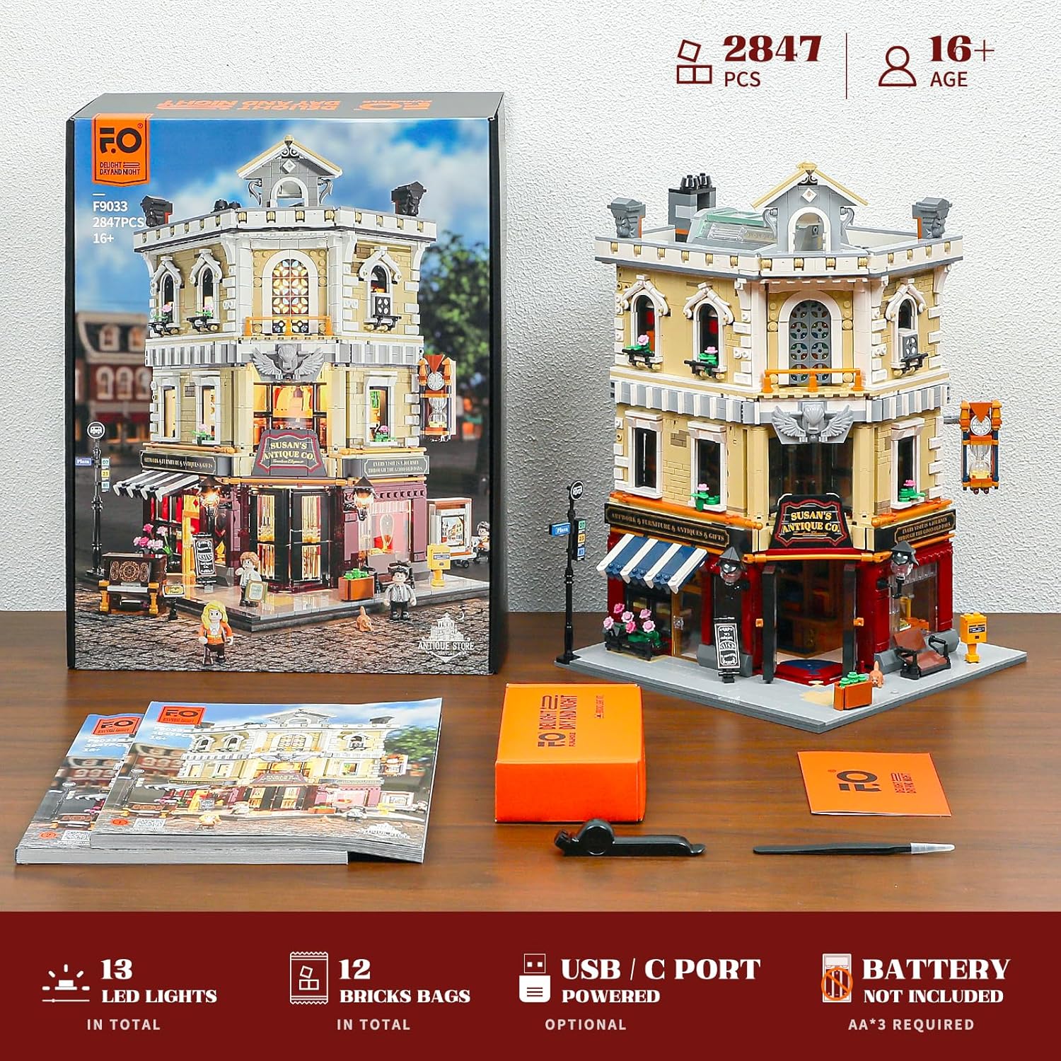 Funwhole Antiquitätengeschäft-Beleuchtung Bausteinset - Stadtleben Eckladen LED-Licht Baukasten Modellset 2847 Stücke für Erwachsene und Jugendliche | قیمت یورویی 149.99€
