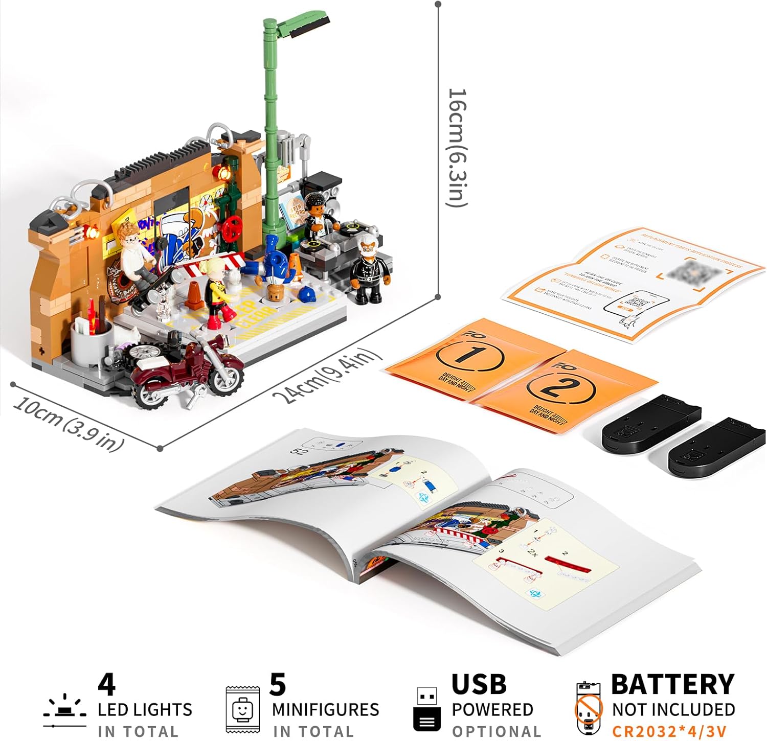 FUNWHOLE Streetstyle Straßen-Tanzbattle Beleuchtetes Bausteine-Set,City Straßenfusion Modular Building, 429 Pcs, Spielzeug-Geschenk für Erwachsene & Jugendliche & Street-Culture-Fans, F9069 | قیمت یورویی 39.99€
