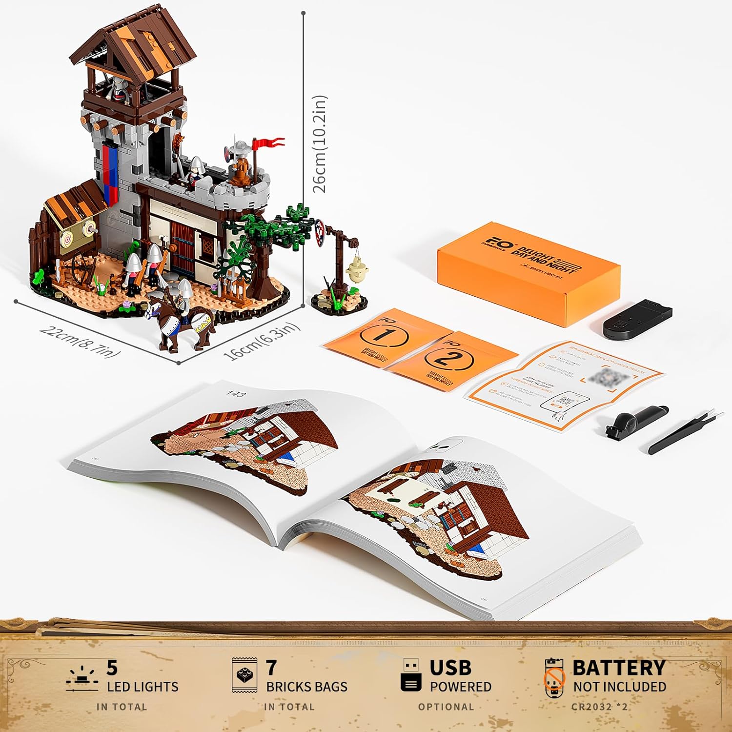 FUNWHOLE Mittelalterlicher Trainingsgelände Beleuchtung Bauklötze Set, 964 Pcs Mittelalter Burg Klemmbausteine Stadttor Castle Spielzeug für Erwachsene und Jugendliche | قیمت یورویی 74.99€