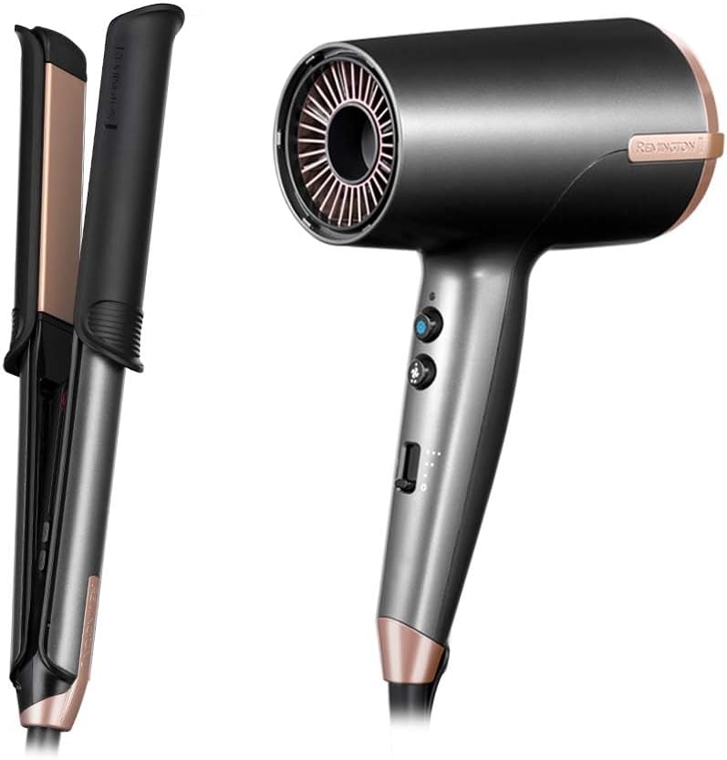مجموعه حالت دهنده موی رمینگتون مدل 1: اتوی صاف کننده و فر کننده مو [حالت دهنده چند حالته 2 در 1] S6078 + سشوار یونی [جریان هوای 120 کیلومتر در ساعت برای خشک کردن سریع] مجموعه حالت دهنده چند حالته مو + سشوار D6078
