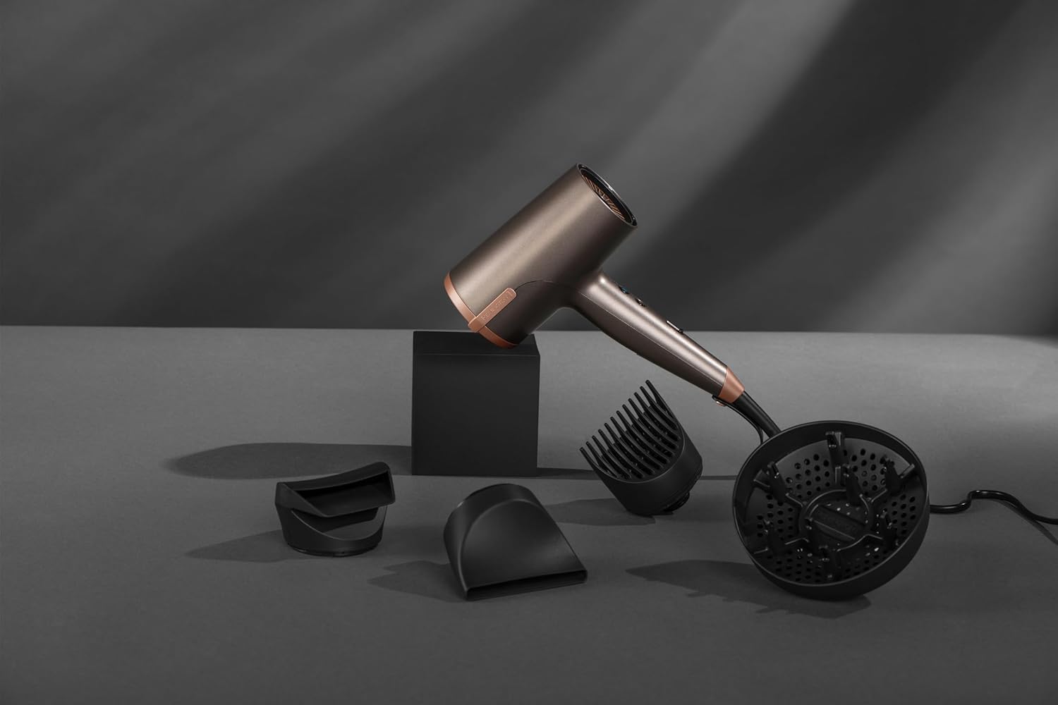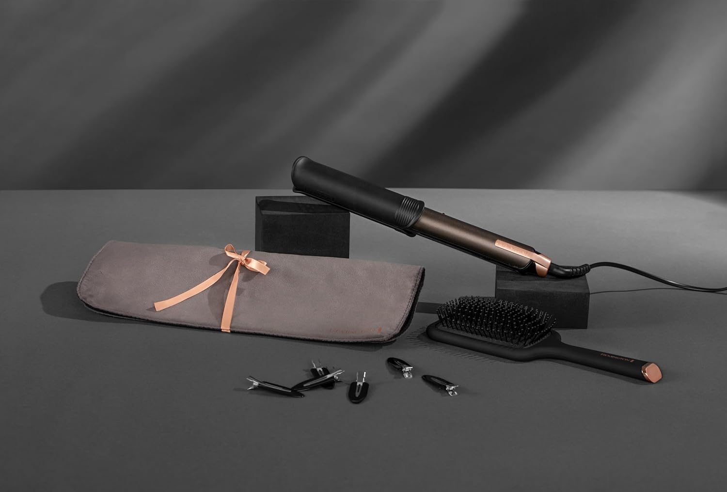 Salonfähiger Haarglätter und Lockenstab, der mühelos glatte Ergebnisse, weiche Locken und Wellen erzeugt Schneller und leistungsstarker 2.000 Watt Haartrockner mit vier Stylingaufsätzen: Flyaway-Aufsatz zur Bändigung fliegender Haare (Babyhaare) Diffusor für ein schonendes Trocknen Diffusor zum Definieren von Locken Schmale Stylingdüse, feiner & breiter Kammaufsatz FlexiCovers, die einfach zwischen dem Glätt- und dem Lockenmodus wechseln: Glättmodus mit beheizten Stylingplatten Lockenmodus mit beheizter keramikbeschichteter Außenfläche 120 km/h Luftstrom für eine 25 % schnellere Trocknung (*Im Vergleich zu luftgetrocknetem Haar) Digitales Display mit 5 Temperatureinstellungen von 150-230°C, schnelle Aufheizzeit, einsatzbereit in 20 Sekunden, automatische Sicherheitsabschaltung nach 60 Minuten Leichtes, ausbalanciertes Design für eine komfortable Nutzung, Thermacare-Sensor passt die Lufttemperatur kontinuierlich an, um vor extremer Hitze zu schützen Inkl. hochwertige Haarbürste, 6 Haarklammern, luxuriöser Aufbewahrungstasche und Stylinghandschuh Zweifacher Ionengenerator stößt bis zu 80 Millionen Ionen pro Trocknungsvorgang** aus und sorgt für ein glattes, frizz-freies Ergebnis (** Im Vergleich zu Standard Remington Haartrockner) Transportverriegelung, Kabeldrehgelenk, weltweite Spannungsanpassung 8 Heiz- und Geschwindigkeitskombinationen, Kaltstufe um deinen Style zu fixieren, Aufhängeöse mit integrierter Kabelaufwicklung, Aufbewahrungstasche | قیمت یورویی : 110.1€