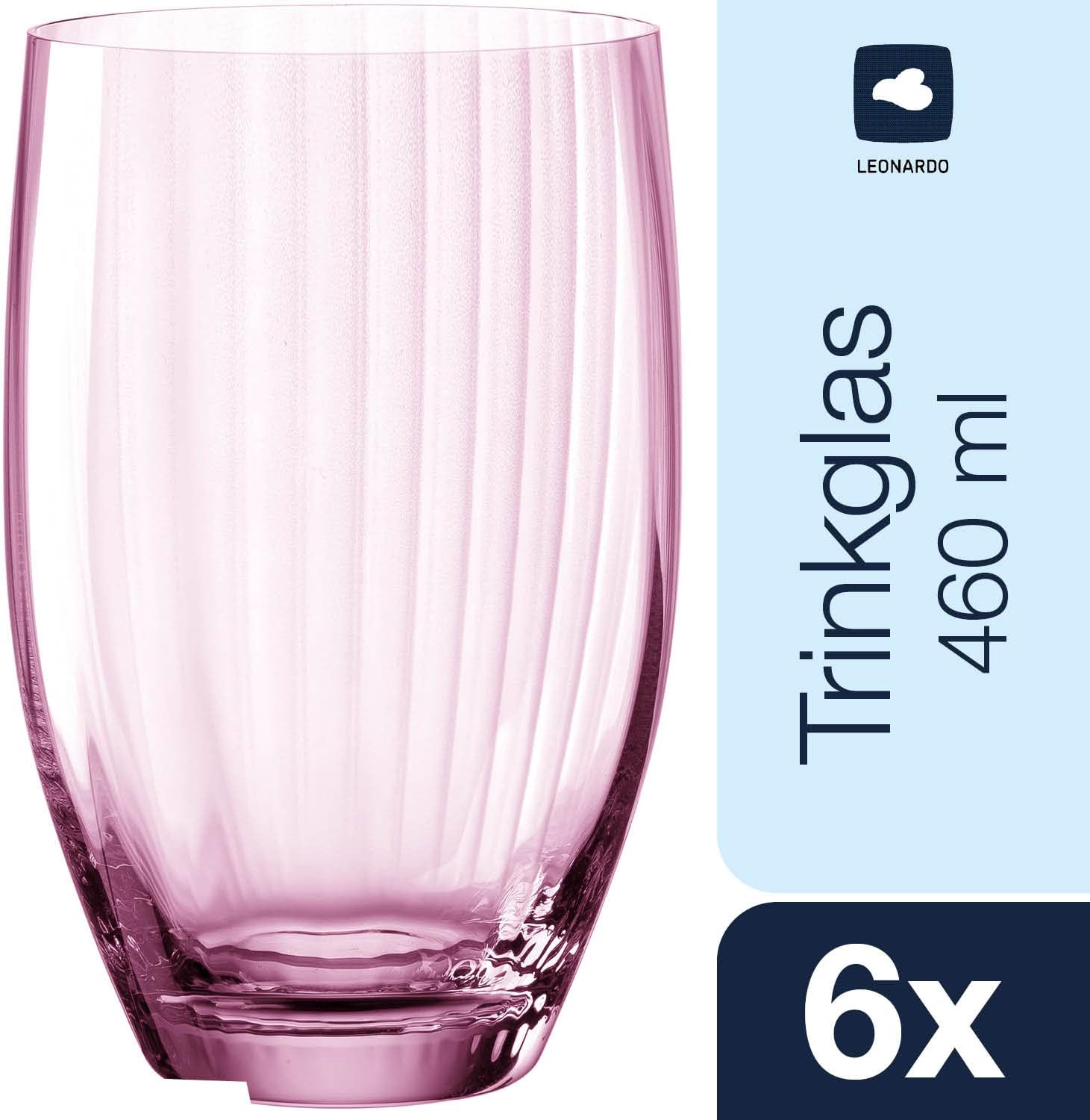LEONARDO HOME Poesia Trinkglas 6er Set, spülmaschinengeeignete Wasser-Gläser, Trink-Becher aus Glas, Saft-Gläser, Getränke-Set, 460 ml, Glas, rosé, 022379 Trinkglas 460ml Rosé 6 Gläser | قیمت یورویی 40.69€