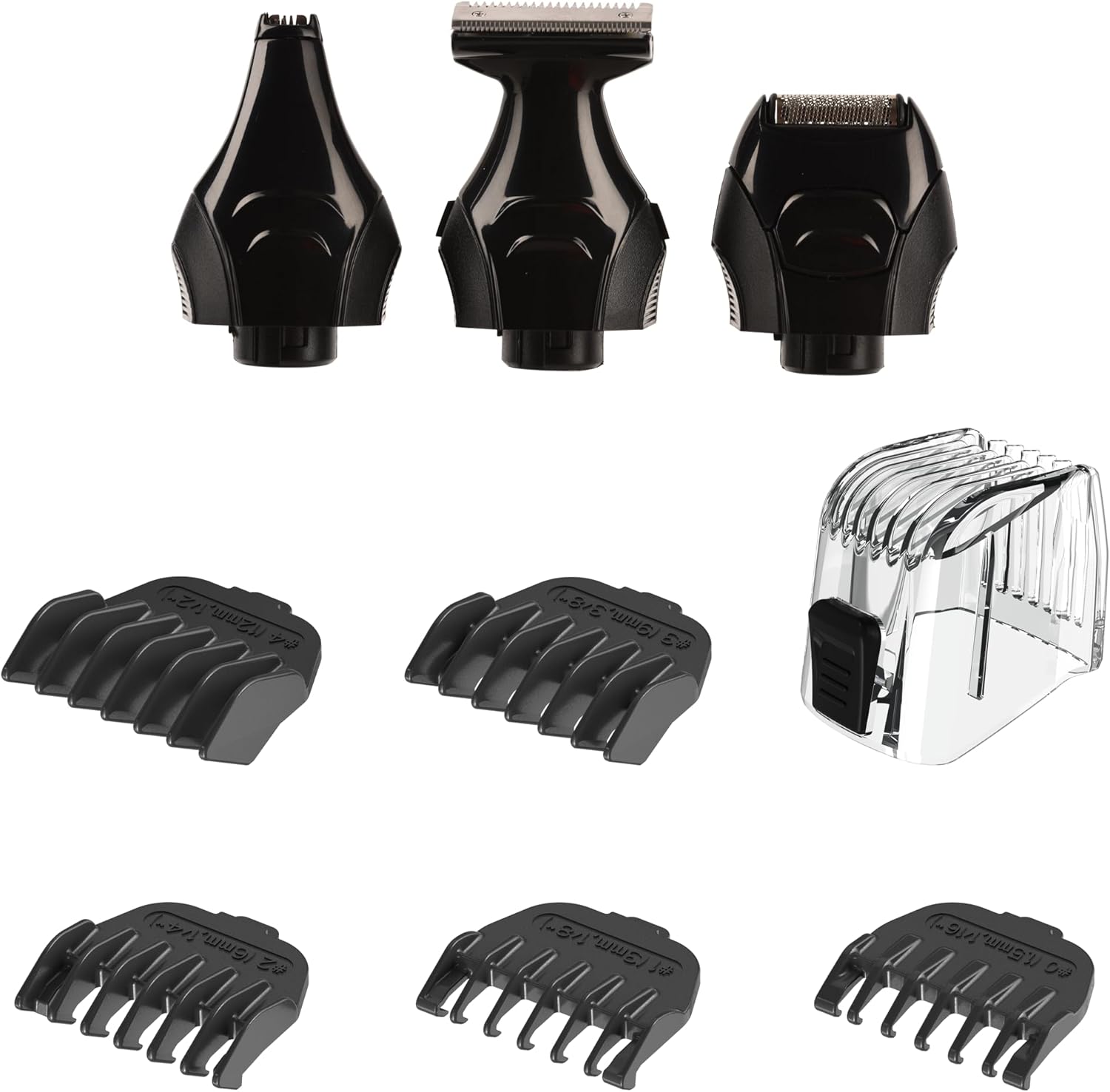 مجموعه ماشین اصلاح و ماشین اصلاح موی رمینگتون [شامل جایگاه نگهداری] اصلاح موی صورت و بدن (5 شانه 1-12 میلیمتری، شانه قابل تنظیم 2-16 میلیمتری، ماشین اصلاح جزئی، ماشین اصلاح کوچک، ماشین اصلاح بینی و گوش) PG6030