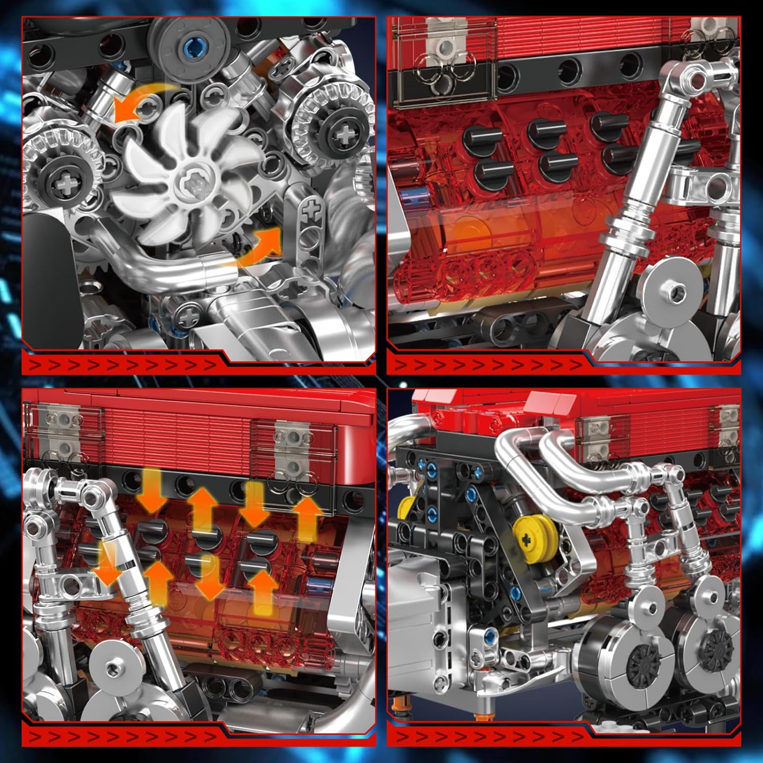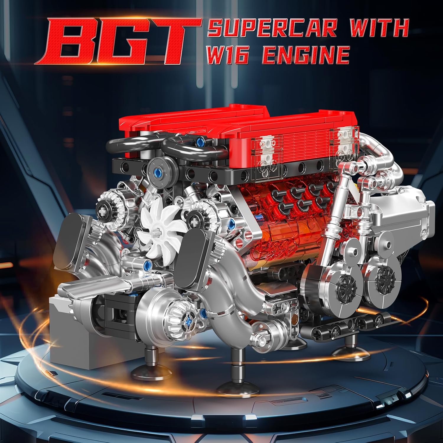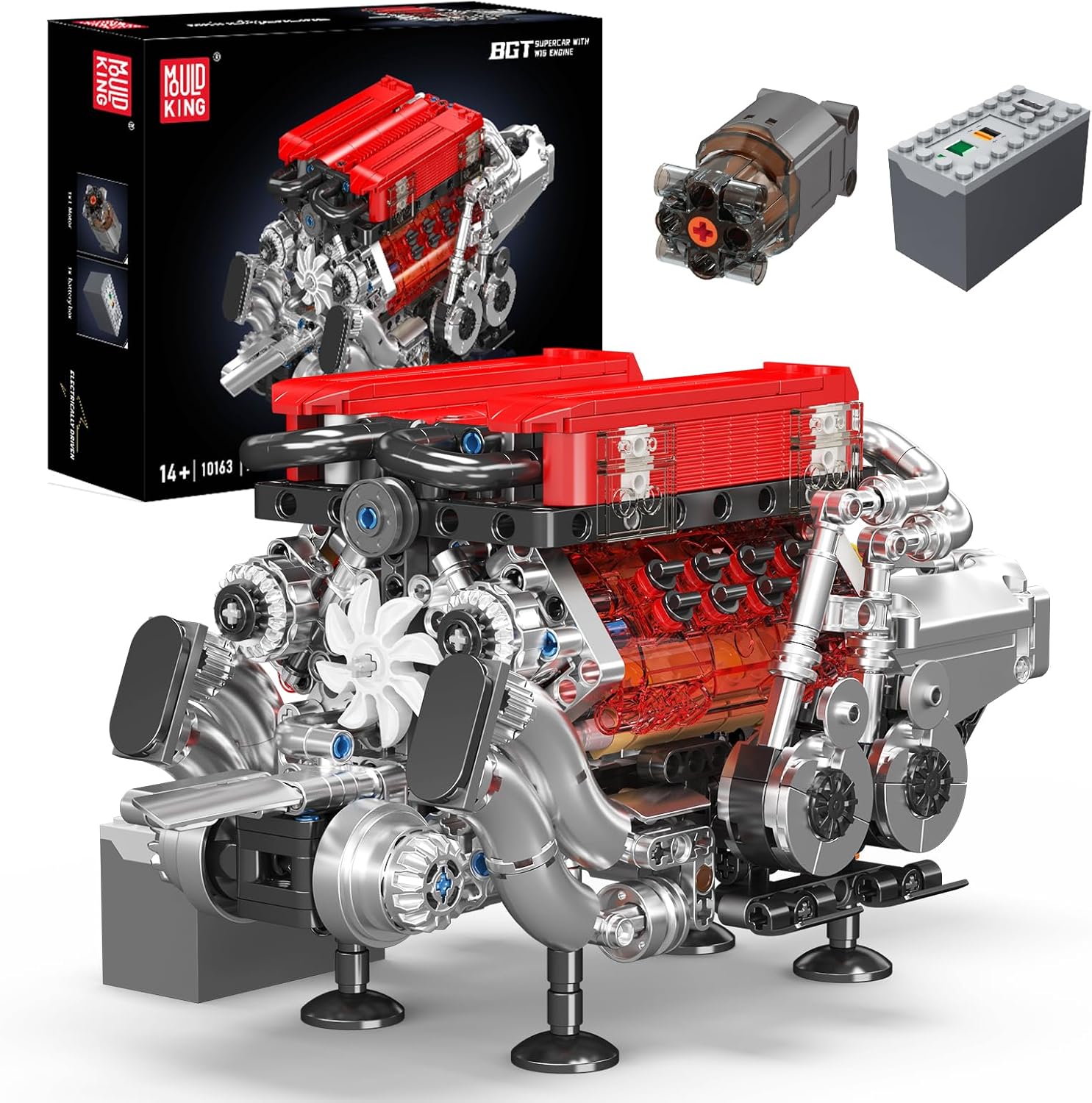 Mould King 10163 Technik W16 Motor Set für Erwachsene, Elektromotorantrieb Engine Modell, Ausstellungsstück für Sammler (955Teile) Technologie Klemmbausteine Bausatz | قیمت یورویی 59€