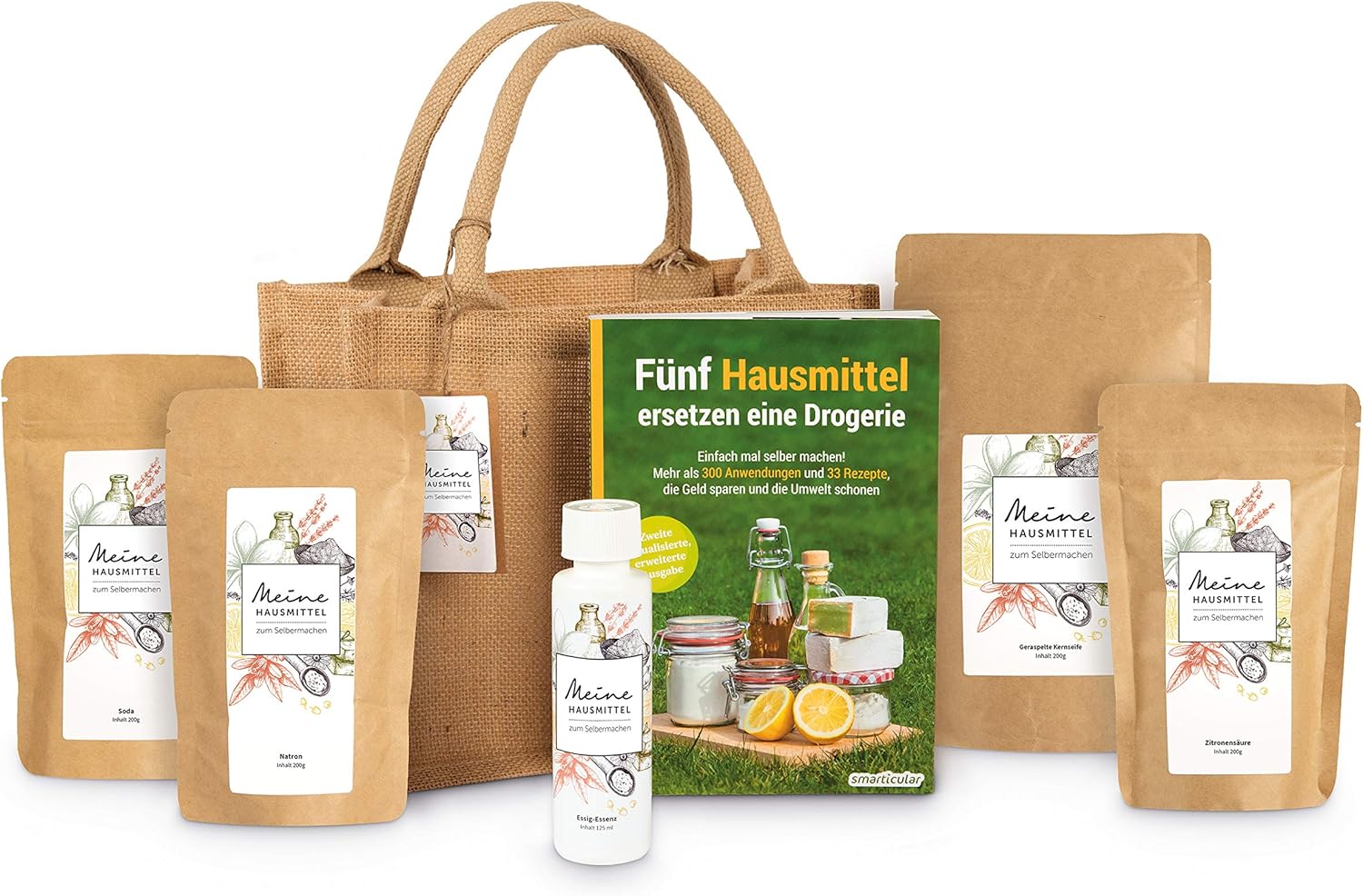 HANSE PRO Geschenk-Set Meine Hausmittel zum Selbermachen I Natron I Soda I Essig I Zitronensäure I Kernseife I Nachhaltige Geschenke I mit praktischer Jute-Tasche (mit Buch) Geschenk-Set mit Buch | قیمت یورویی 44.99€