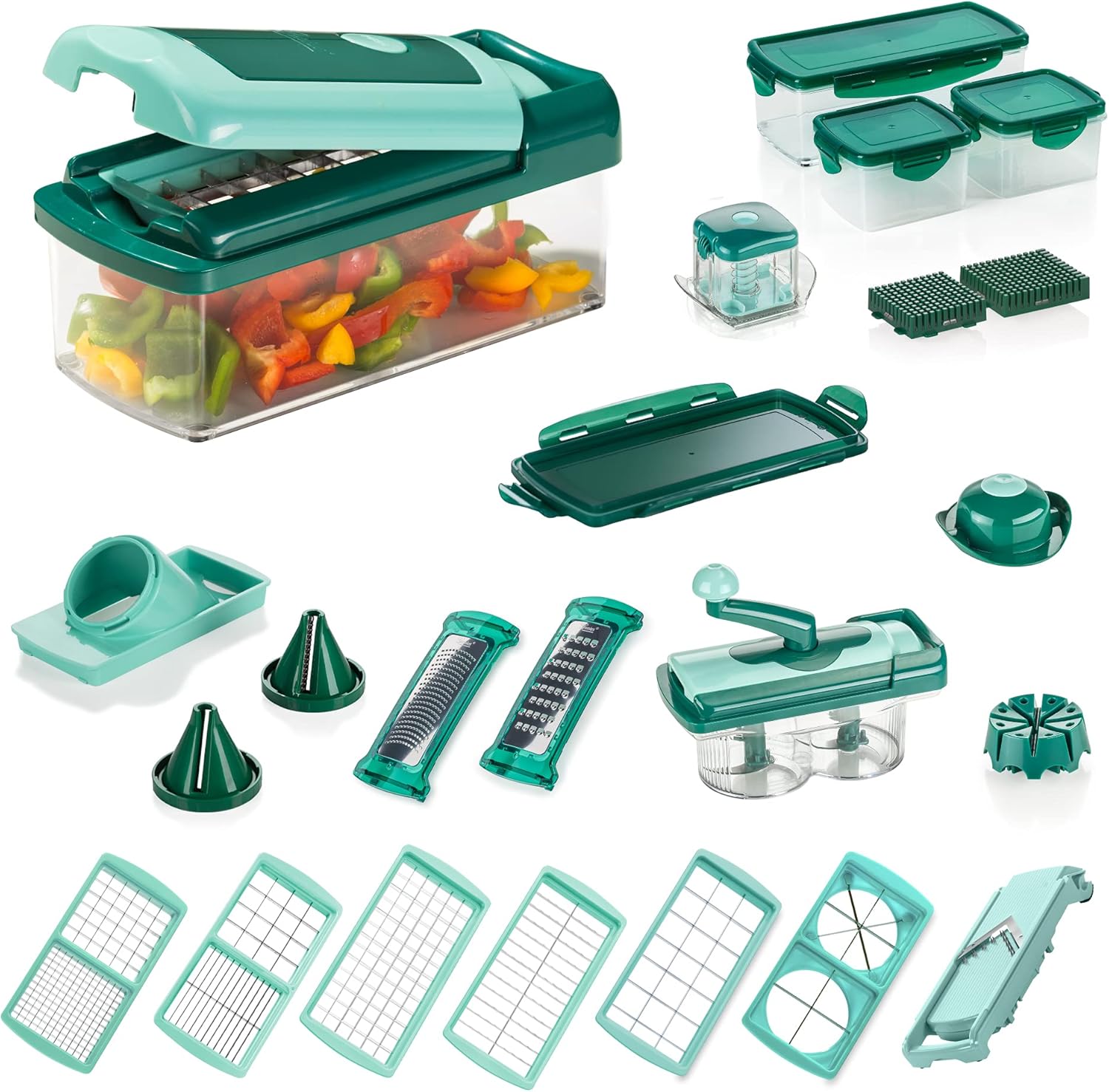 Genius Nicer Dicer Fusion Smart Set (34 Teile) inkl. Twist Alles-Schneider Hobeln Würfeln Julienne Spiralen Obst- und Gemüseschneider - Ideal für den gesunden Lebensstil | قیمت یورویی 96.94€