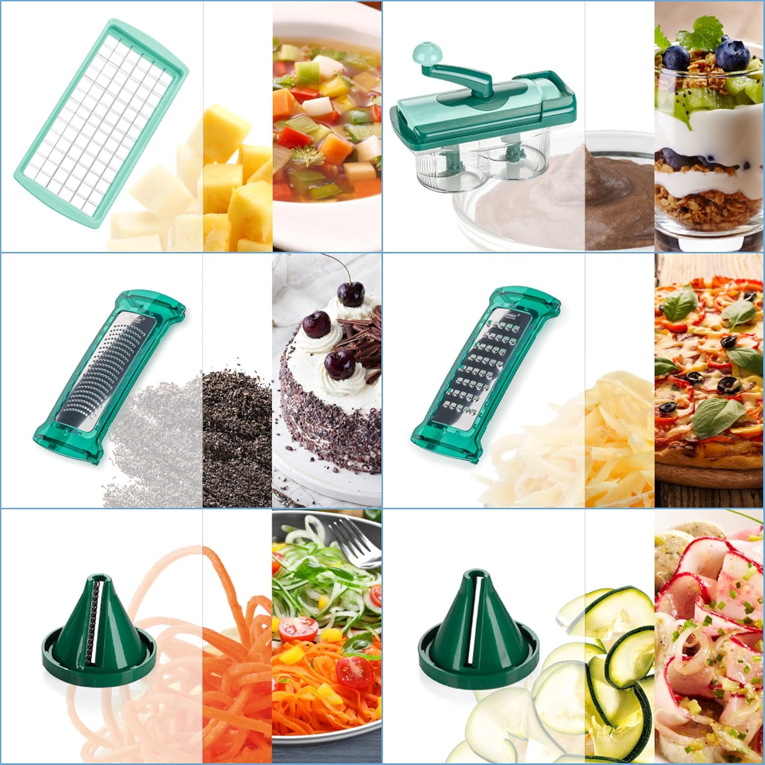 𝐈𝐧𝐧𝐨𝐯𝐚𝐭𝐢𝐯𝐞𝐫 𝐊ü𝐜𝐡𝐞𝐧𝐡𝐞𝐥𝐟𝐞𝐫 ✔ - Das flexible Multi-Talent ist der ideale Helfer für die gesunde Ernährung. Mit dem Nicer Dicer Fusion Smart machen Sie unterschiedlich große Würfel oder Stifte, Viertel oder Achtel, Scheiben, Streifen, Julienne, Juliettis und Spiralen 𝐆𝐫𝐨ß𝐞 𝐙𝐞𝐢𝐭𝐞𝐫𝐬𝐩𝐚𝐫𝐧𝐢𝐬 ✔ - Zaubern Sie schnelle Gerichte mit zahlreichen Schneidvarianten und blitzschnell austauschbaren Messereinsätzen auf Restaurant-Niveau in kürzester Zeit. Mühelos, schnell und völlig ohne Strom 𝐄𝐧𝐨𝐫𝐦 𝐏𝐥𝐚𝐭𝐳𝐬𝐩𝐚𝐫𝐞𝐧𝐝 ✔ - Der Multischneider ist ein geniales System zur Zubereitung von Salaten, Obst- und Gemüsegerichten. Sie können das Zubehör sogar platzsparend direkt im Behälter aufbewahren 𝐇𝐨𝐜𝐡𝐰𝐞𝐫𝐭𝐢𝐠𝐞 𝐐𝐮𝐚𝐥𝐢𝐭ä𝐭 ✔ - Der ultrarobuste Schneiddeckel rastet mühelos auf dem rutschfesten Auffangbehälter ein. Die präzisionsgeschliffenen Klingen aus Edelstahl in GNOX-Qualität sind messerscharf, robust und rostfrei 𝐏𝐫𝐚𝐤𝐭𝐢𝐬𝐜𝐡𝐞 𝐒𝐞𝐥𝐛𝐬𝐭𝐫𝐞𝐢𝐧𝐢𝐠𝐮𝐧𝐠 ✔ - Durch Betätigung des „Push“-Buttons wird die integrierte Reinigungsplatte automatisch nach unten gedrückt und reinigt das Stifteraster selbst von kleinsten Essensresten | قیمت یورویی : 96.94€