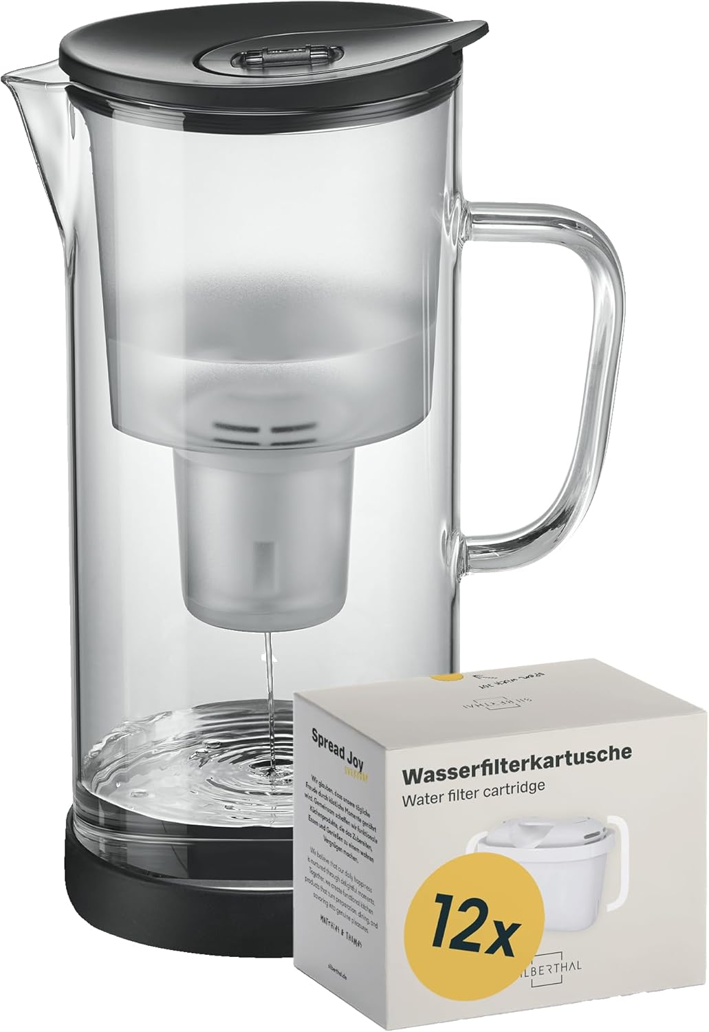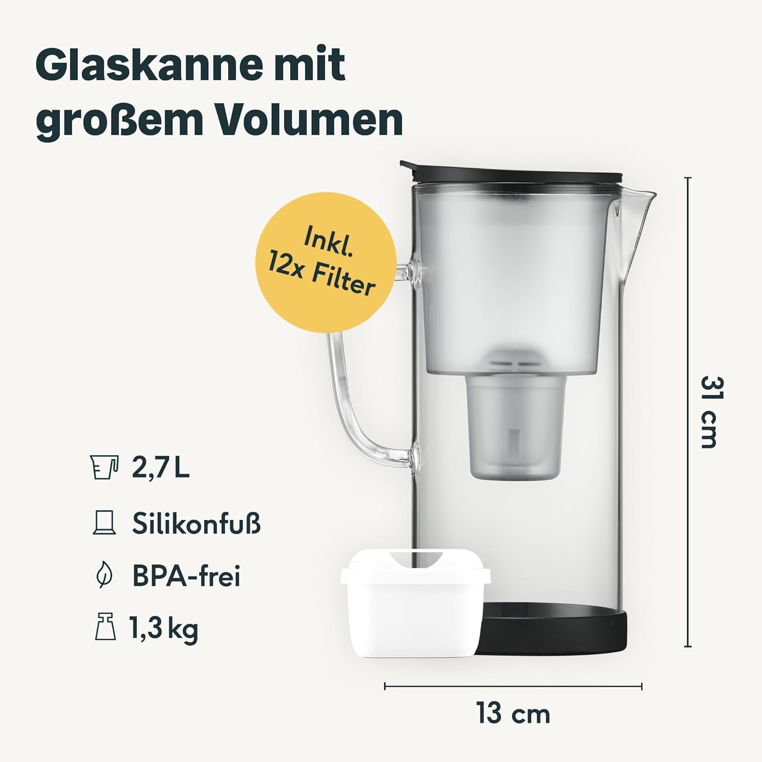SILBERTHAL Wasser Filterkannen Set inkl. 12er Pack Filterkartuschen - Glas - Reduziert Kalk und Chlor - 2,7 Liter Filterkanne + 12er Set | قیمت یورویی 83.95€