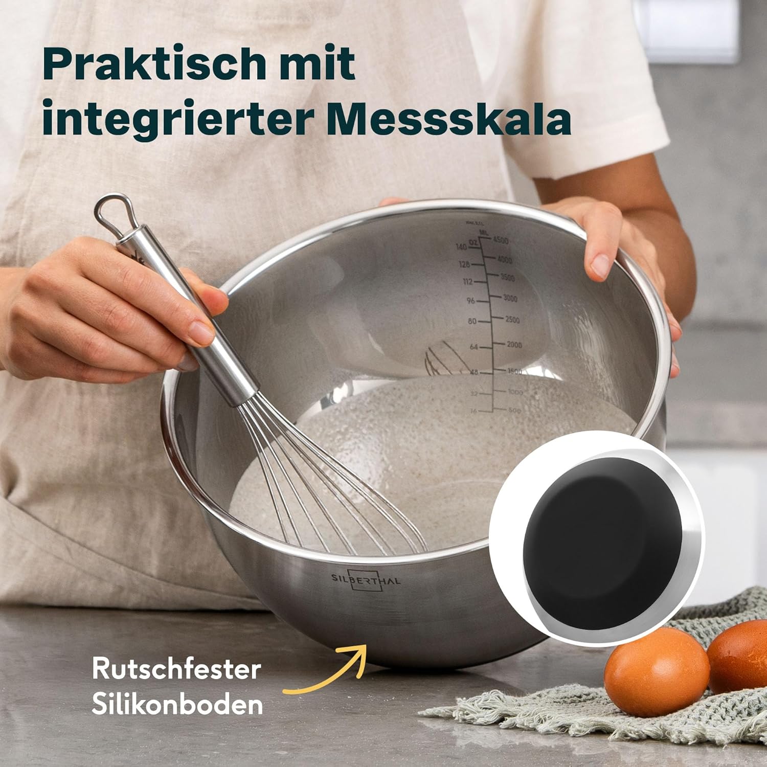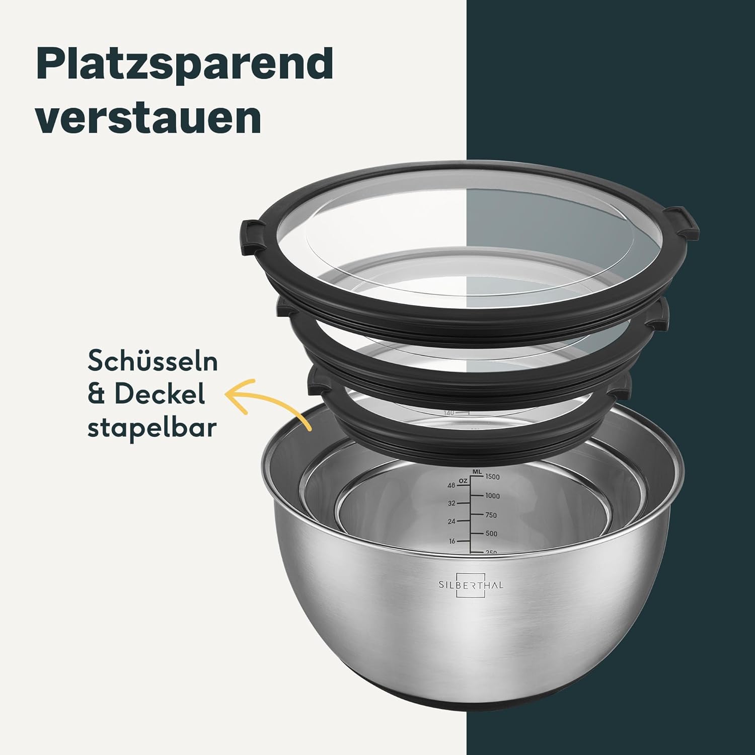 SILBERTHAL Edelstahl Schüssel 5er Set mit Deckel - Rührschüsseln zum Servieren, Kochen, Backen, Aufbewahren - Rutschfester Boden - 5 Stück | قیمت یورویی 62.95€