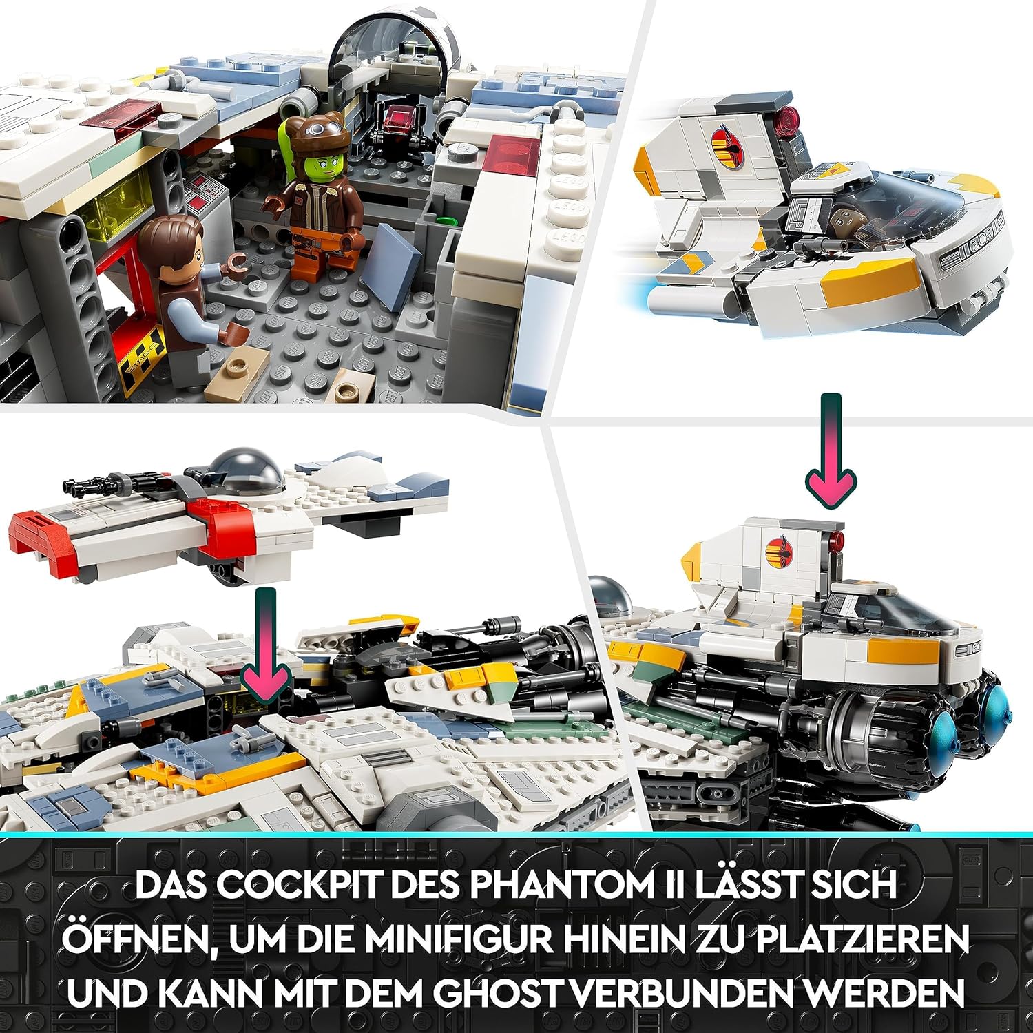 LEGO 75357 Star Wars Ghost & Phantom II Set mit 2 aus Bausteinen gebauten Ahsoka-Fahrzeugen, baubares Raumschiff-Spielzeug mit 5 Charakteren, darunter Jacen Syndulla und Einer Chopper-Droidenfigur | قیمت یورویی 169.99€