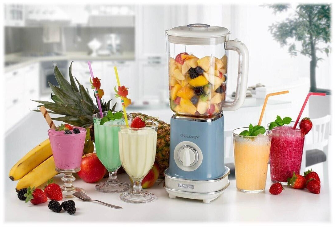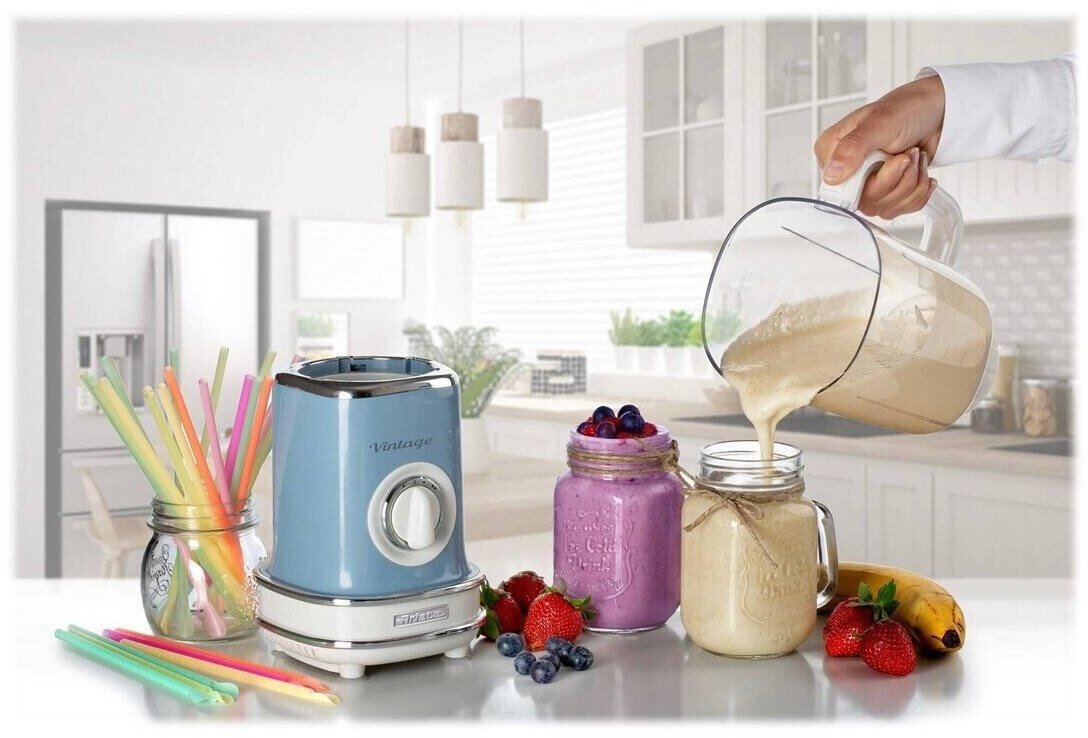 مخلوط کن آریته مدل 568/05 با طراحی کلاسیک و رنگ آبی پاستلی، برای تهیه مخلوطهای سبک، خمیر، خامه و سسهای خانگی انتخابی زیبا و کاربردی است.