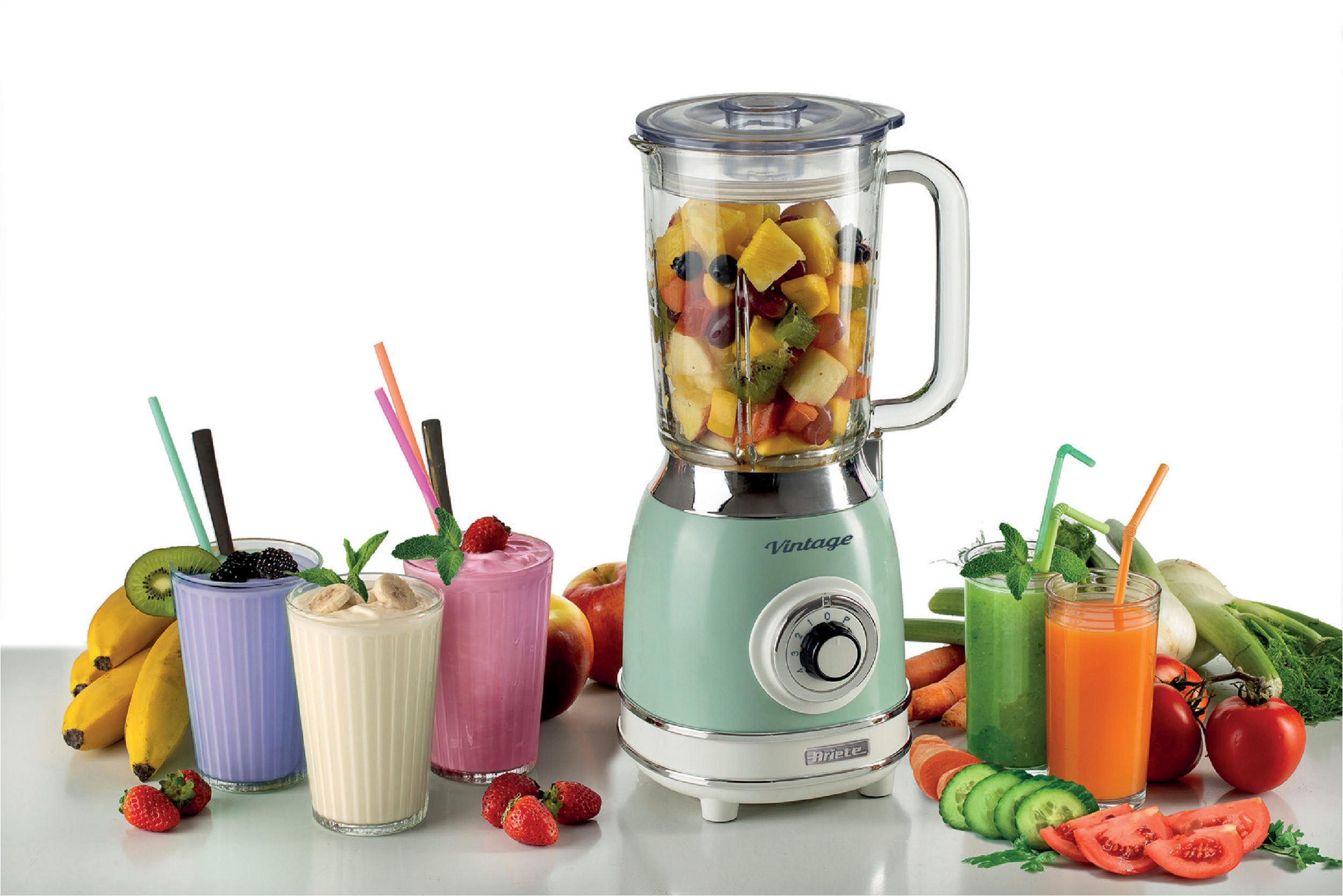 مخلوط کن آریته مدل Vintage 583 با توان 600 وات و پارچ شیشهای 1.5 لیتری، برای تهیه انواع اسموتی، شیک، سوپ و خرد کردن یخ طراحی شده است. این دستگاه دارای 4 سطح سرعت مختلف و عملکرد پالس میباشد که به شما اجازه میدهد بافت مواد غذایی را دقیق کنترل کنید. طراحی رترو با رنگ خاص، جذابیت ویژهای به آشپزخانه شما میبخشد. بدنه فلزی مقاوم و پایههای ضد لغزش، کاربری ایمن و راحتی را فراهم میکند.